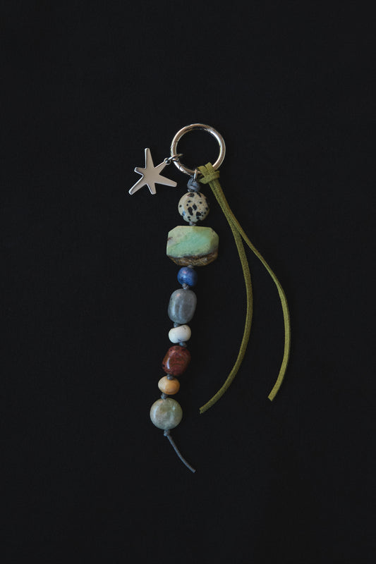 以礦石結合多元材質,創造出帶有自然與當代設計質感的吊飾