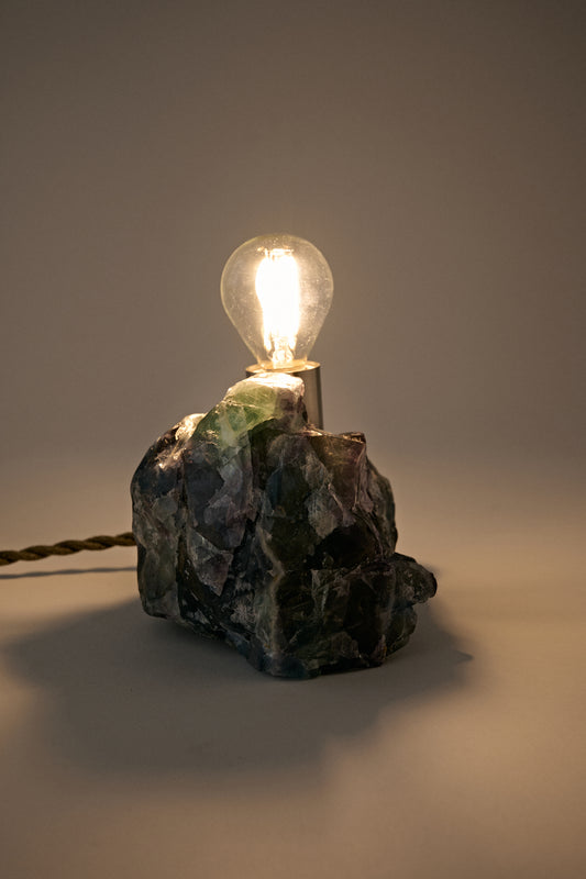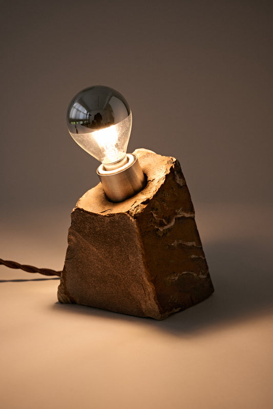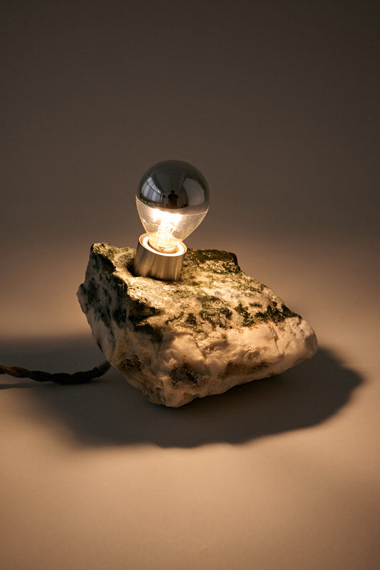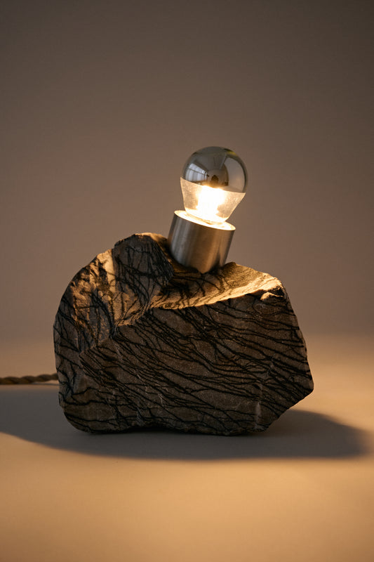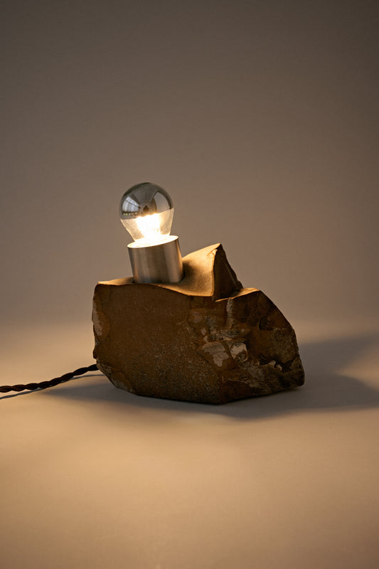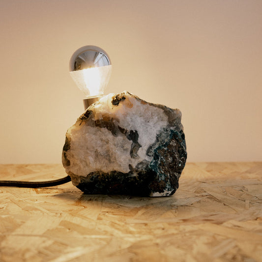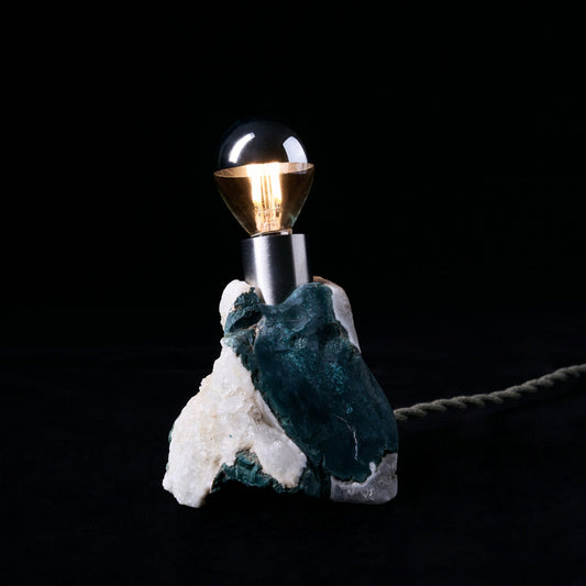 天然原礦結合金屬材質設計,結合大地肌理與手工工藝的獨特桌燈