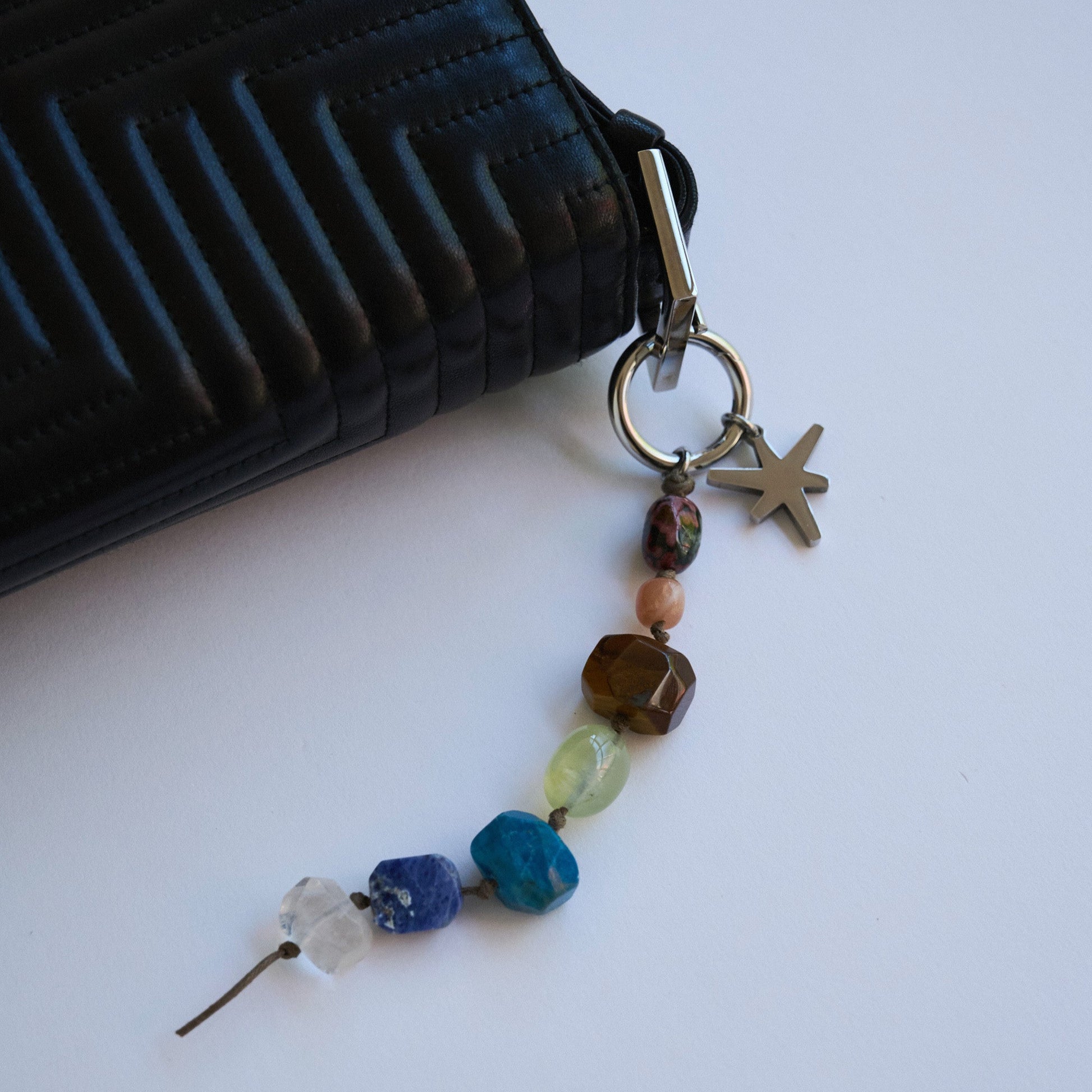 材質: 天然石、品牌標誌不鏽鋼扣環、水洗色蠟繩、北極星不鏽鋼吊墜