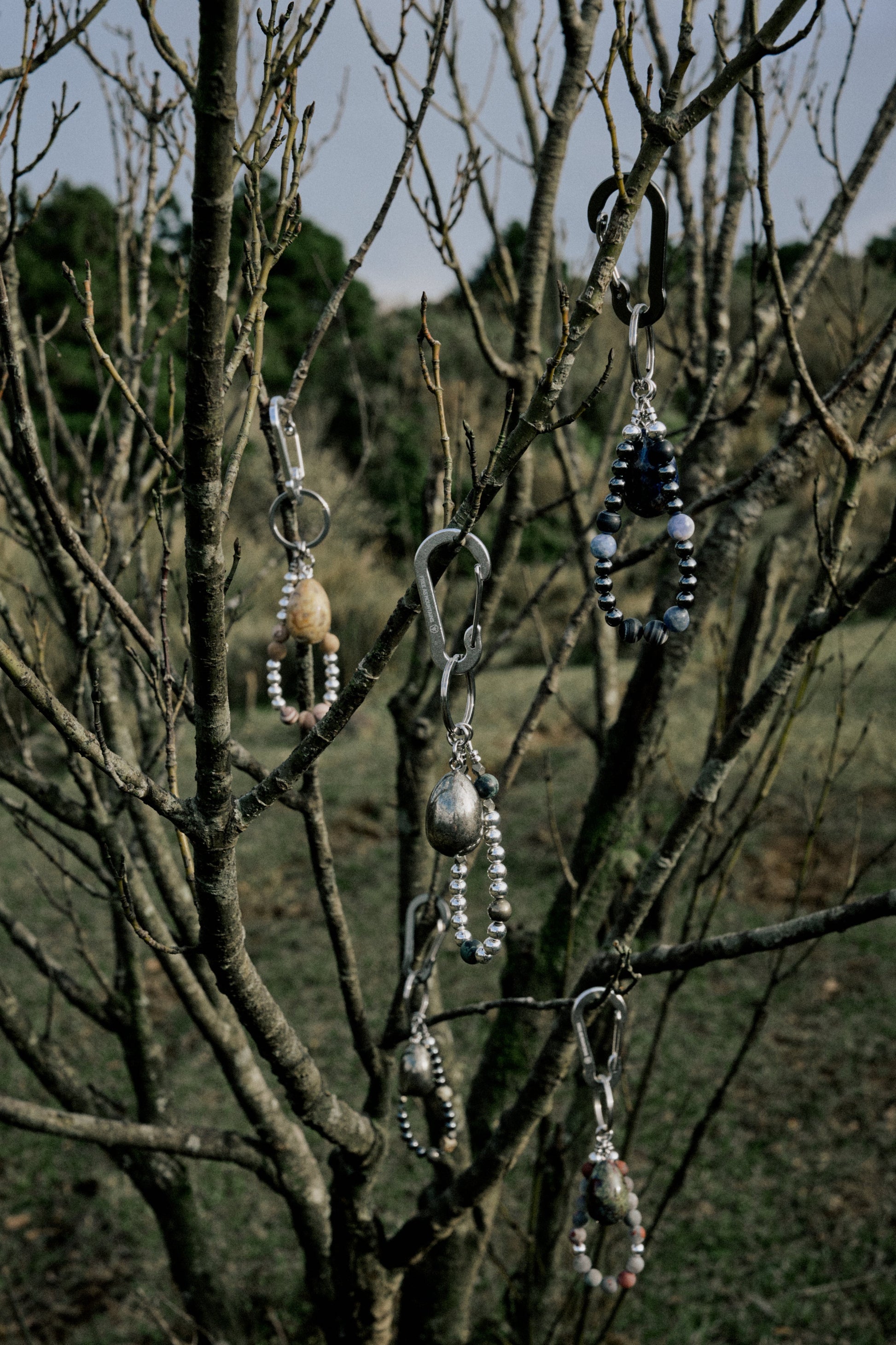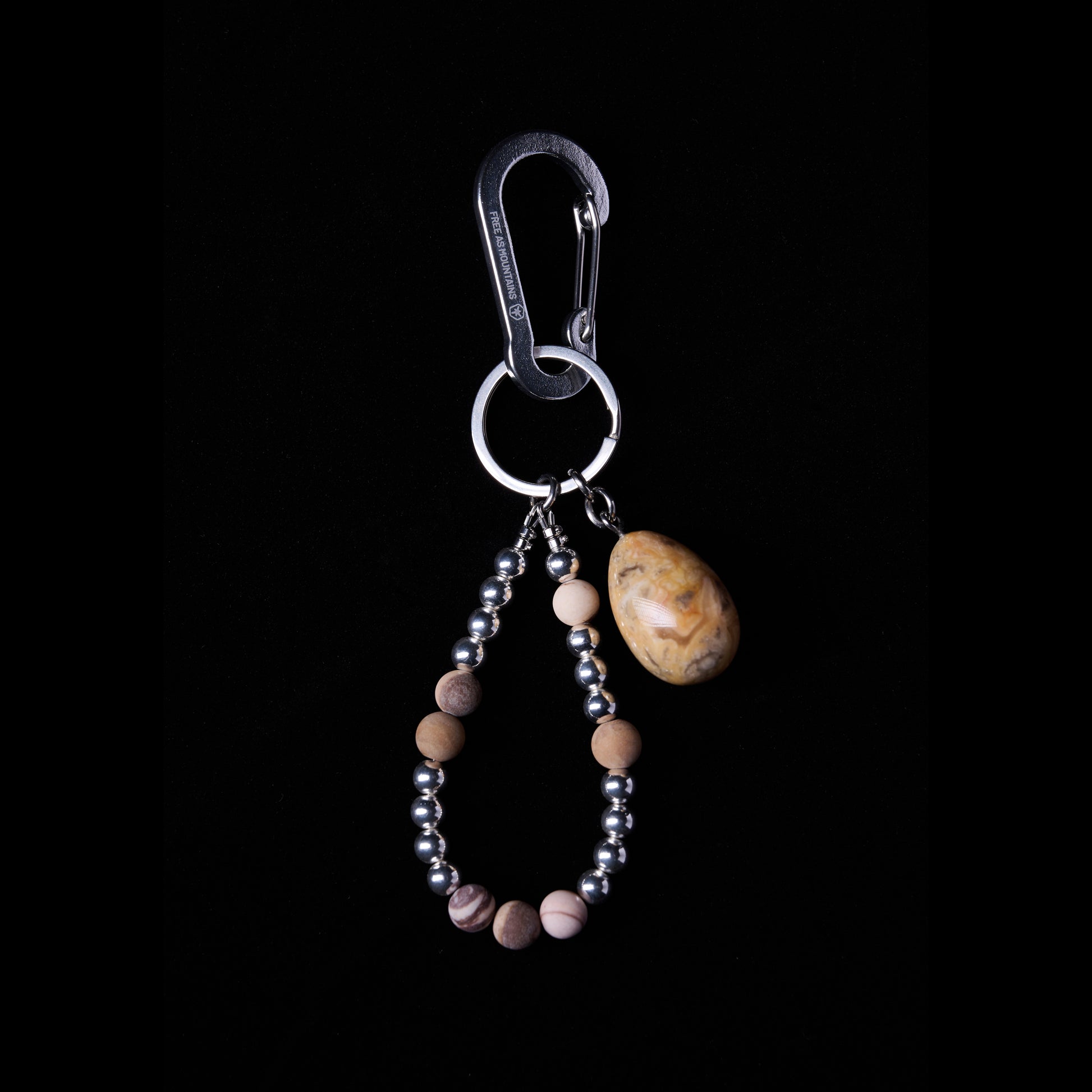 這款小紋蛋鑰匙圈以狂紋瑪瑙為主材質,搭配赤鐵礦、斑馬紋碧玉與木紋碧玉製成。蛋型設計象徵無限可能與內在自由。狂紋瑪瑙的多樣紋理激發創意靈感,赤鐵礦帶來穩固能量,斑馬紋碧玉增強專注力,木紋碧玉則促進和諧,助你釋放內心潛力。