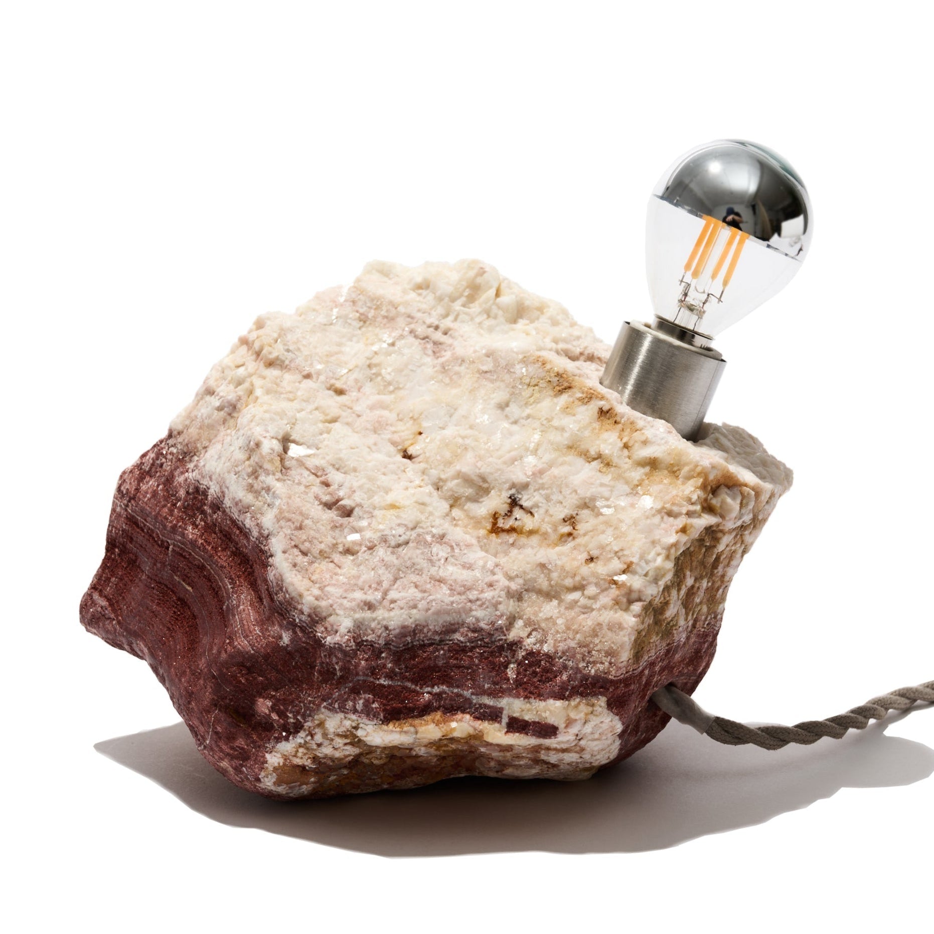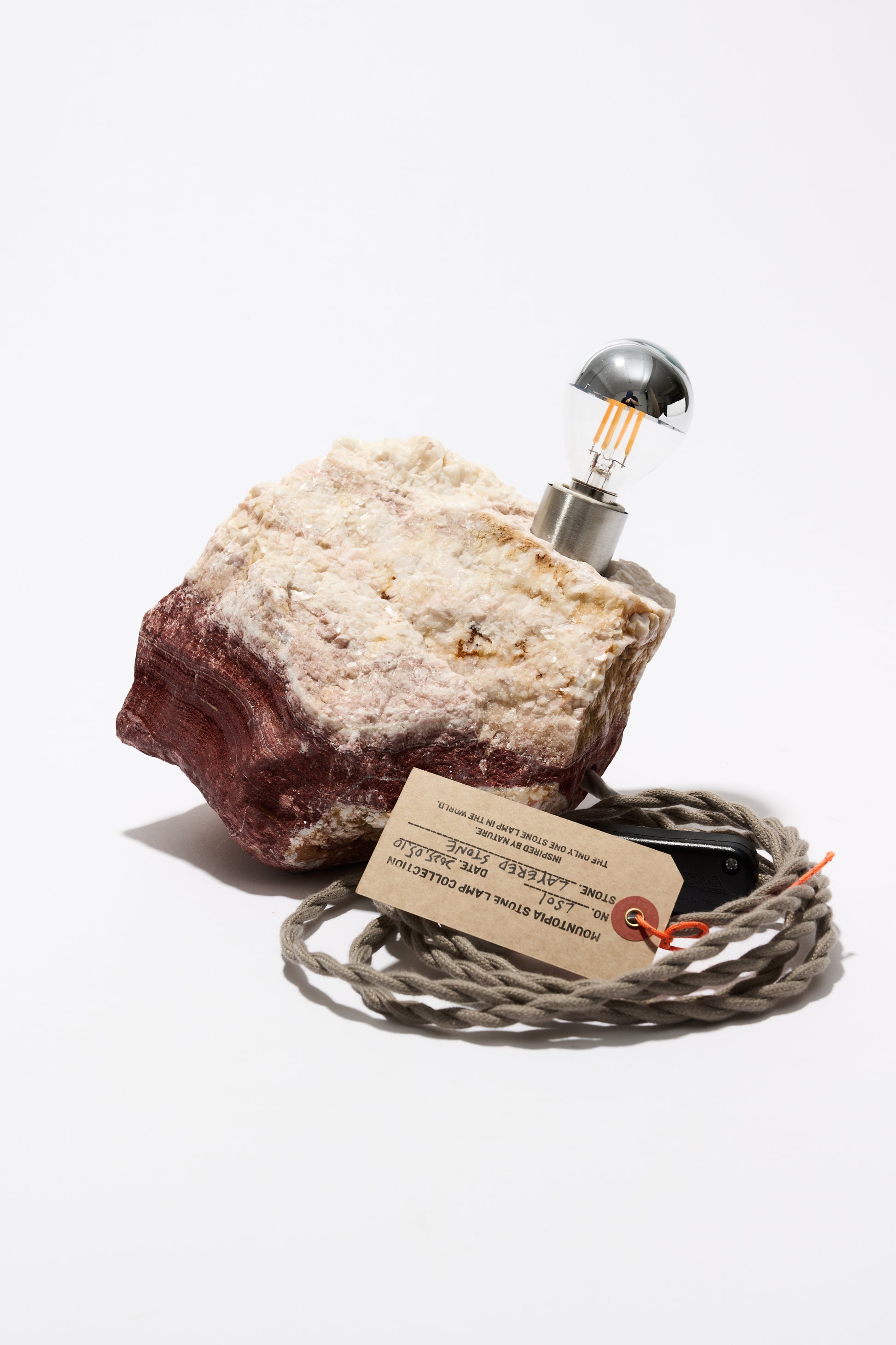 STONE TABLE LAMP 山石燈的靈感源自對烏托邦世界的想像,呼應山托邦 LOGO 中的北極星元素。在品牌成立一週年之際啟動這個計畫,將礦石創意從飾品延伸至家飾燈具,讓礦石化作一座山、燈泡化作一盞「光」,在都市與自然之間,為空間注入希望與指引。每一盞皆由我們親手打造,世界唯一。這是我們獻給自然、設計與內在力量的一份禮物,也是一件值得長久陪伴的空間能量物件