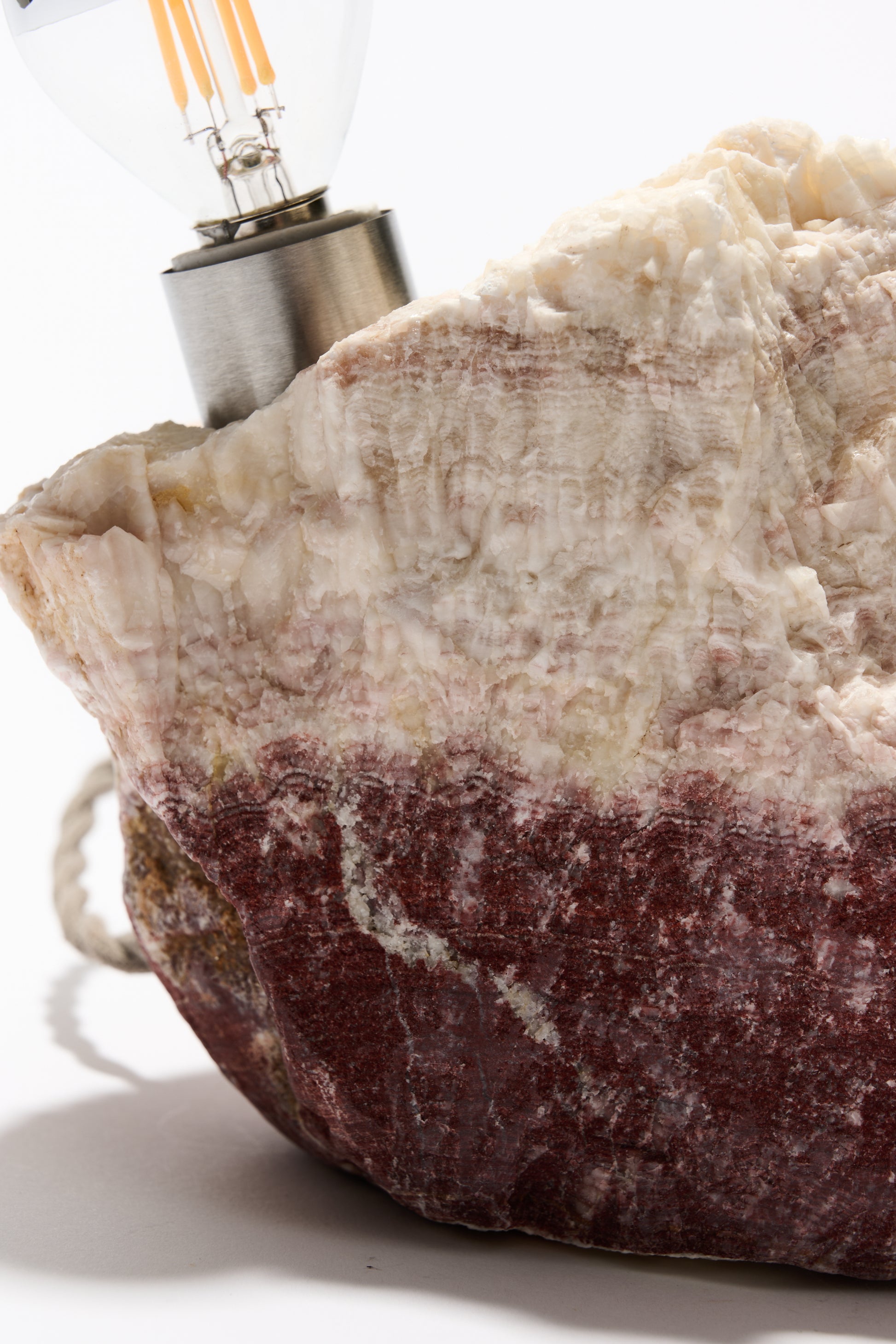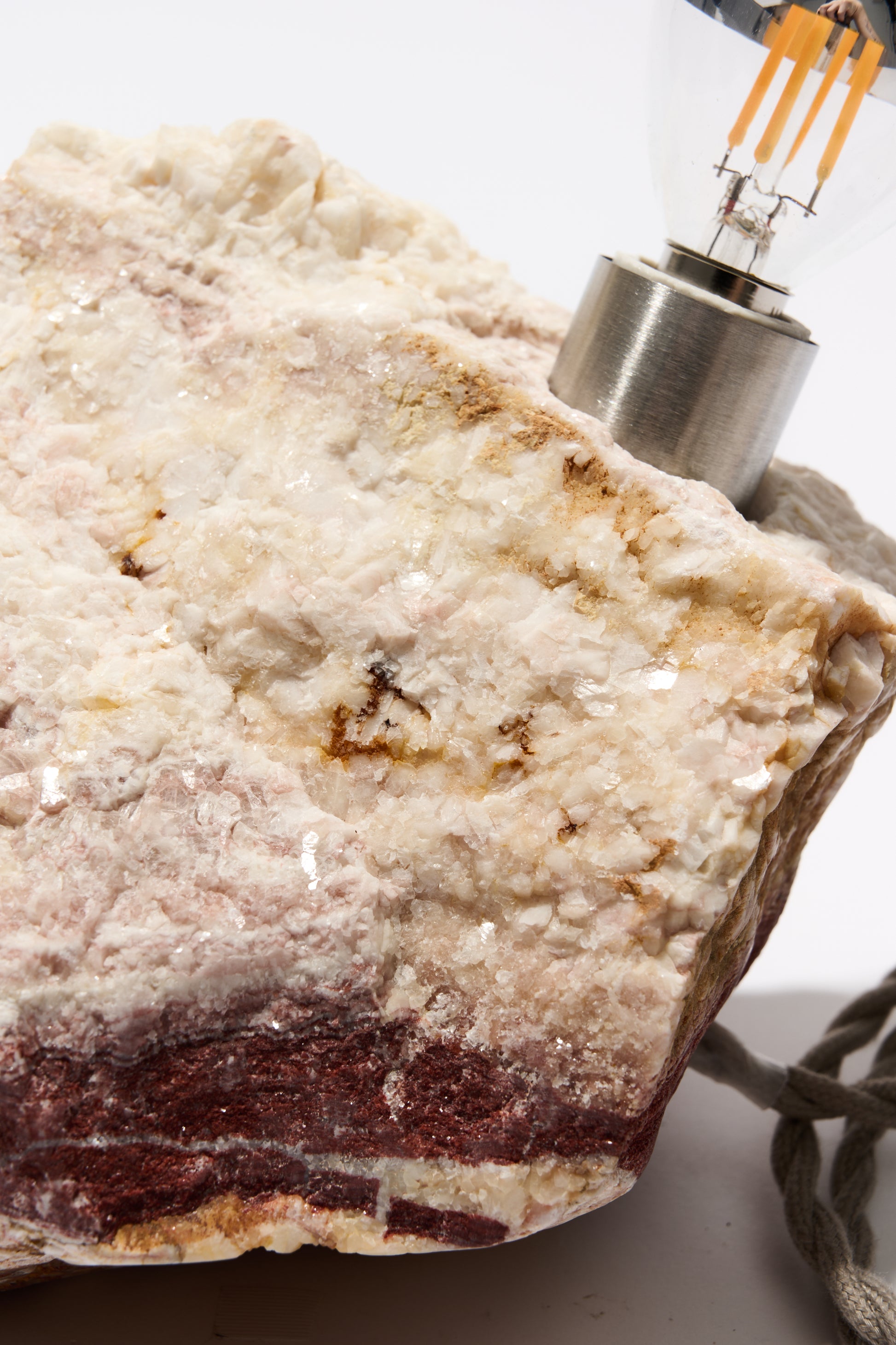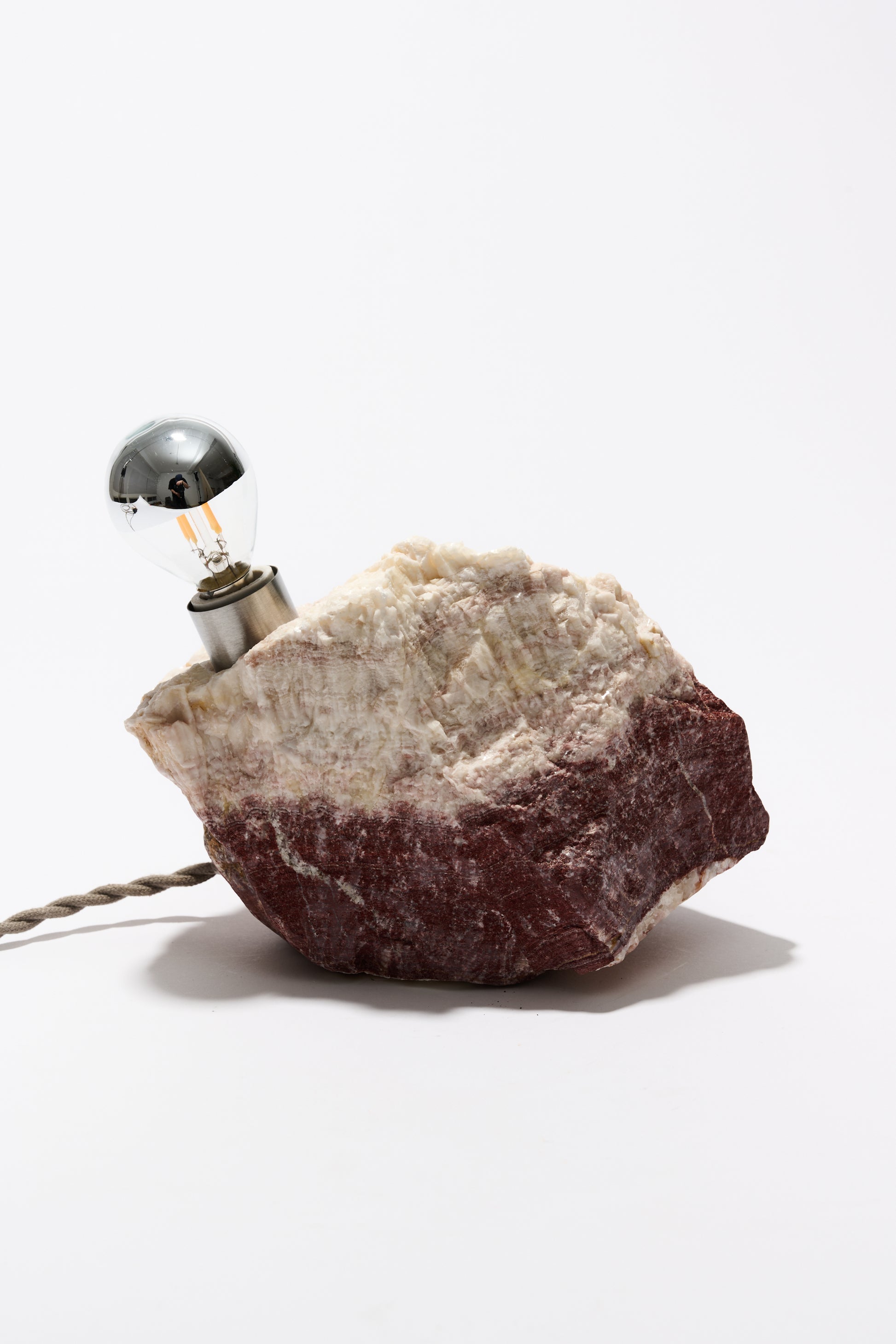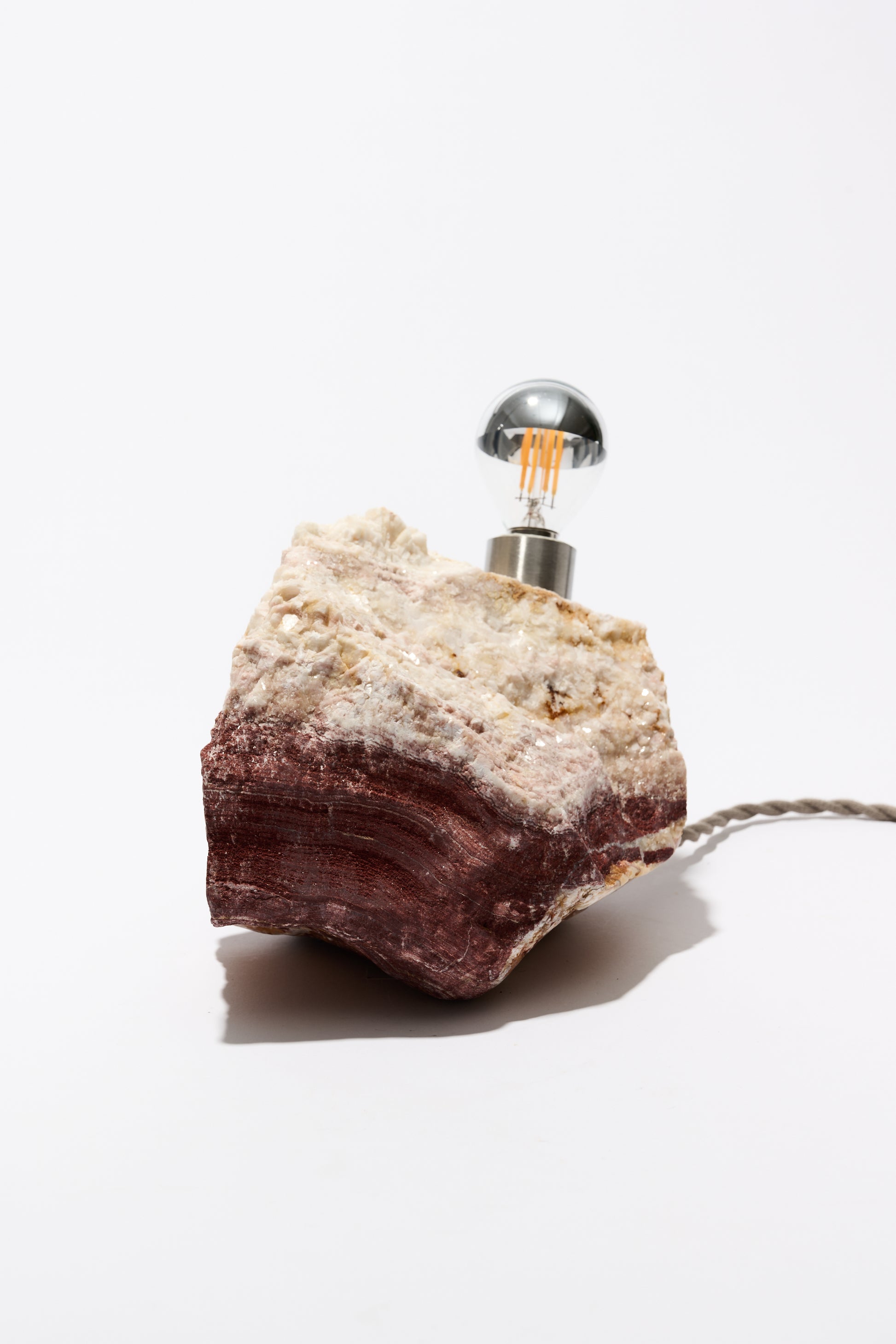《山石燈》從一塊天然原礦出發,保留石材原始裂紋與不對稱輪廓,透過設計轉譯,使其成為燈的本體與能量的載體。每一盞皆由我們全手工製作——從原石挑選、比例構思、打磨到包裝,呈現大地時間的肌理與層次。結合金屬與戶外工業材質,使山石燈兼具獨立性與空間感,適合講究設計氛圍的居家與商業場域