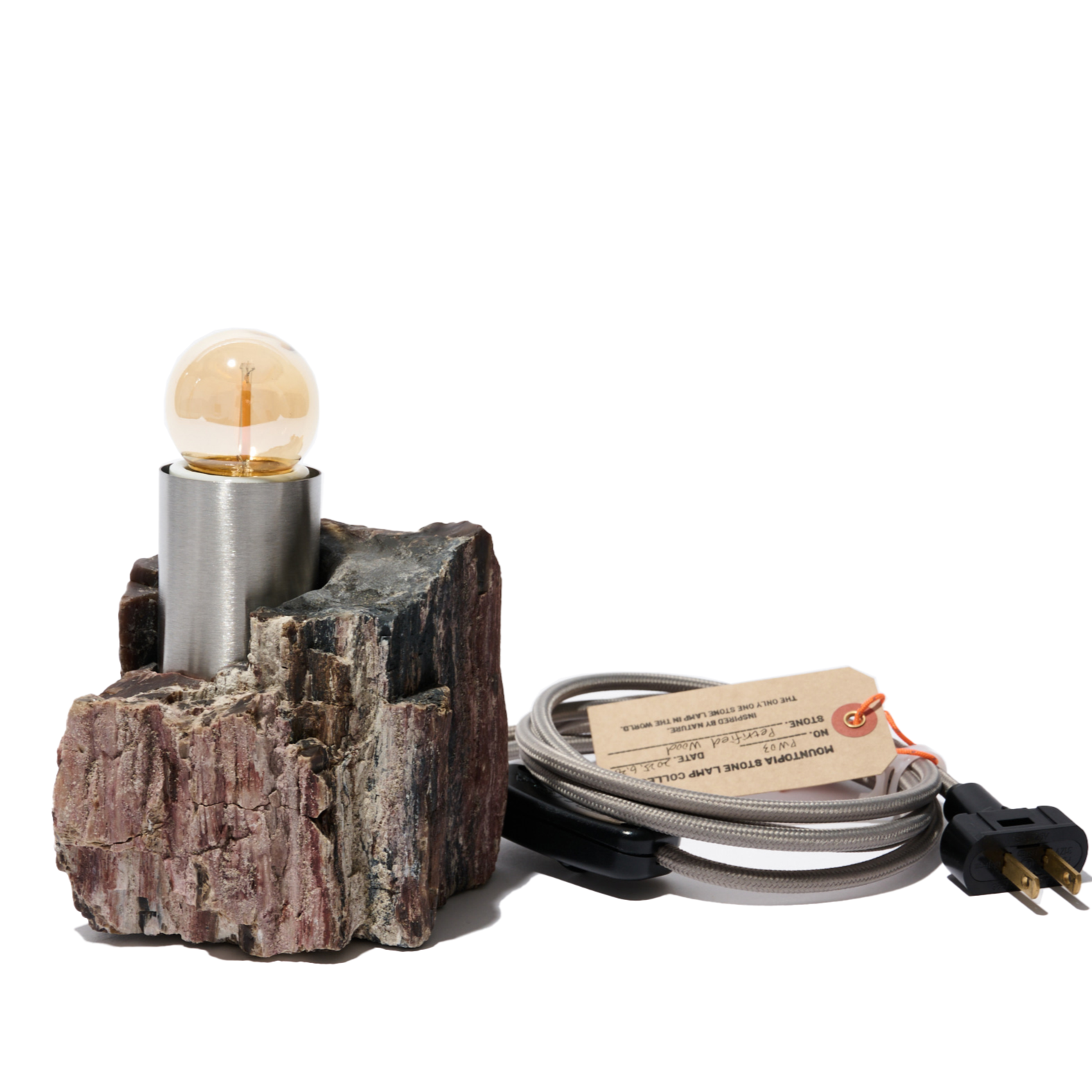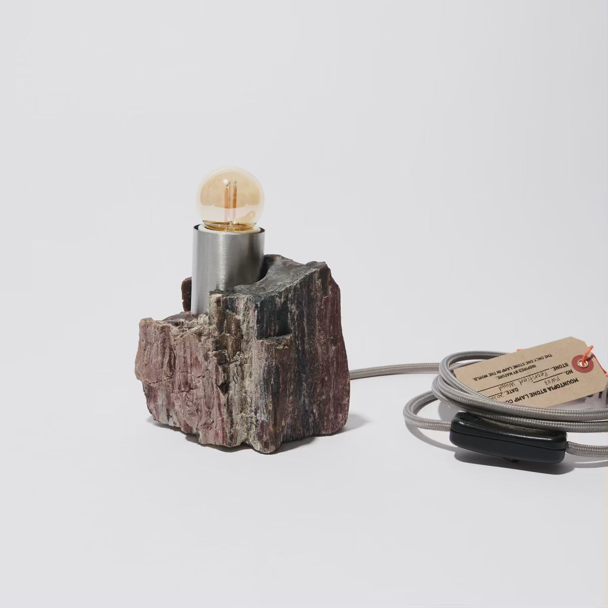 STONE TABLE LAMP 山石燈的靈感源自對烏托邦世界的想像,呼應山托邦 LOGO 中的北極星元素。在品牌成立一週年之際啟動這個計畫,將礦石創意從飾品延伸至家飾燈具,讓礦石化作一座山、燈泡化作一盞「光」,在都市與自然之間,為空間注入希望與指引。每一盞皆由我們親手打造,世界唯一。這是我們獻給自然、設計與內在力量的一份禮物,也是一件值得長久陪伴的空間能量物件