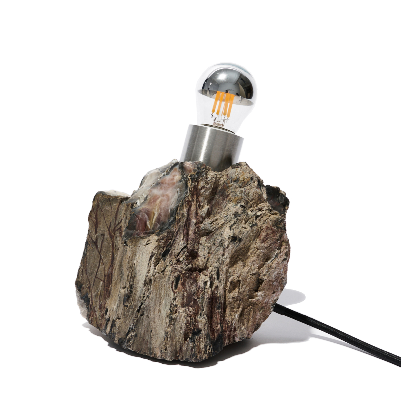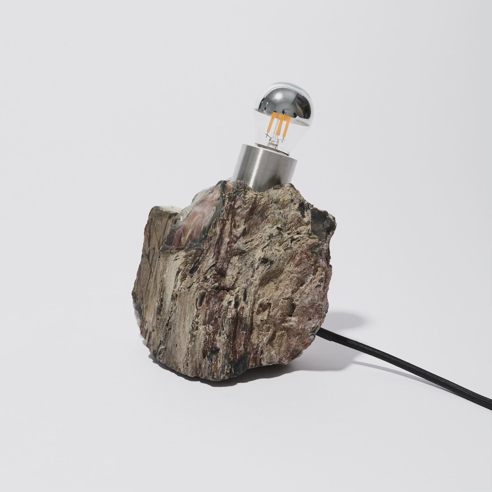 STONE TABLE LAMP 山石燈的靈感源自對烏托邦世界的想像,呼應山托邦 LOGO 中的北極星元素。在品牌成立一週年之際啟動這個計畫,將礦石創意從飾品延伸至家飾燈具,讓礦石化作一座山、燈泡化作一盞「光」,在都市與自然之間,為空間注入希望與指引。每一盞皆由我們親手打造,世界唯一。這是我們獻給自然、設計與內在力量的一份禮物,也是一件值得長久陪伴的空間能量物件