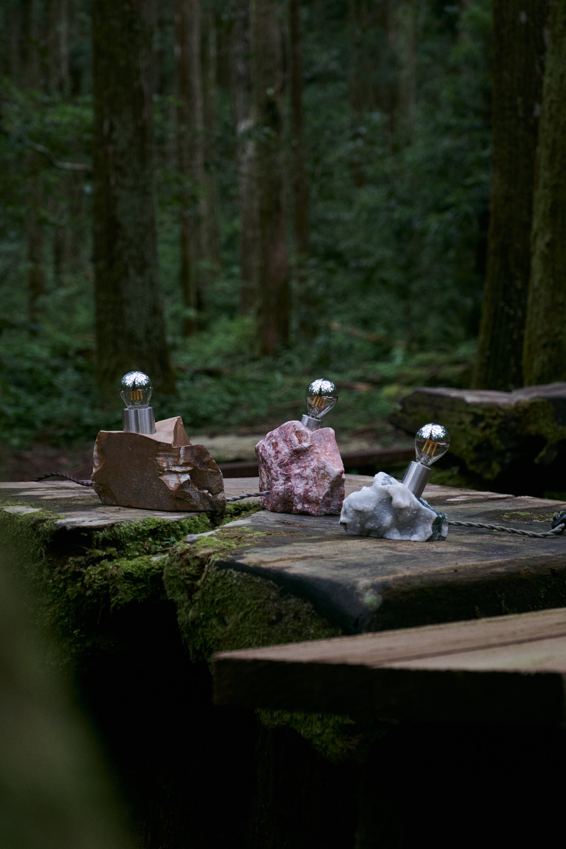 《山石燈》從一塊天然原礦出發,保留石材原始裂紋與不對稱輪廓,透過設計轉譯,使其成為燈的本體與能量的載體。每一盞皆由我們全手工製作——從原石挑選、比例構思、打磨到包裝,呈現大地時間的肌理與層次。結合金屬與戶外工業材質,使山石燈兼具獨立性與空間感,適合講究設計氛圍的居家與商業場域
