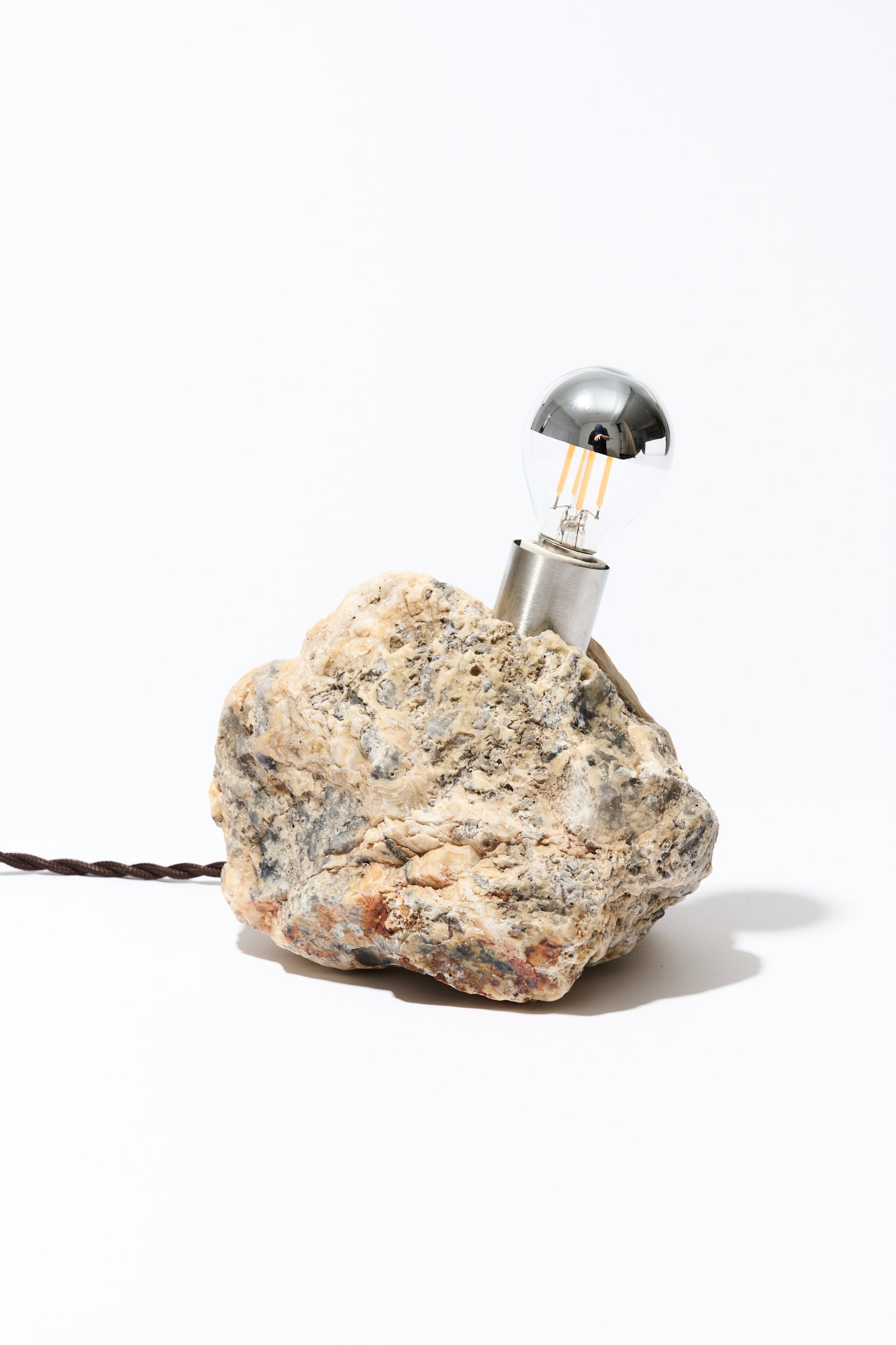 STONE TABLE LAMP 山石燈的靈感源自對烏托邦世界的想像,呼應山托邦 LOGO 中的北極星元素。在品牌成立一週年之際啟動這個計畫,將礦石創意從飾品延伸至家飾燈具,讓礦石化作一座山、燈泡化作一盞「光」,在都市與自然之間,為空間注入希望與指引。每一盞皆由我們親手打造,世界唯一。這是我們獻給自然、設計與內在力量的一份禮物,也是一件值得長久陪伴的空間能量物件