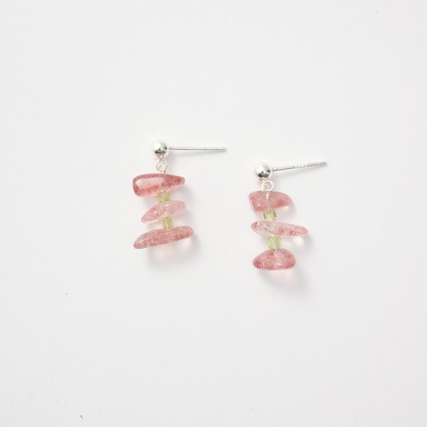 材質:隨型草莓晶、橄欖石珠、925銀耳針
