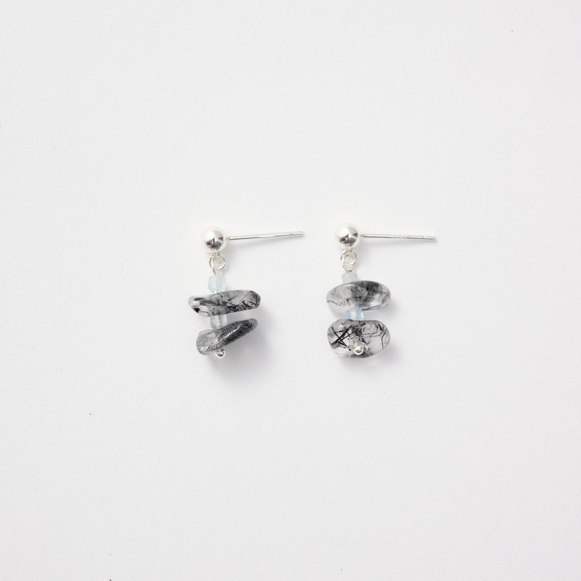 材質:隨型黑髮晶、海藍寶珠、925銀耳針