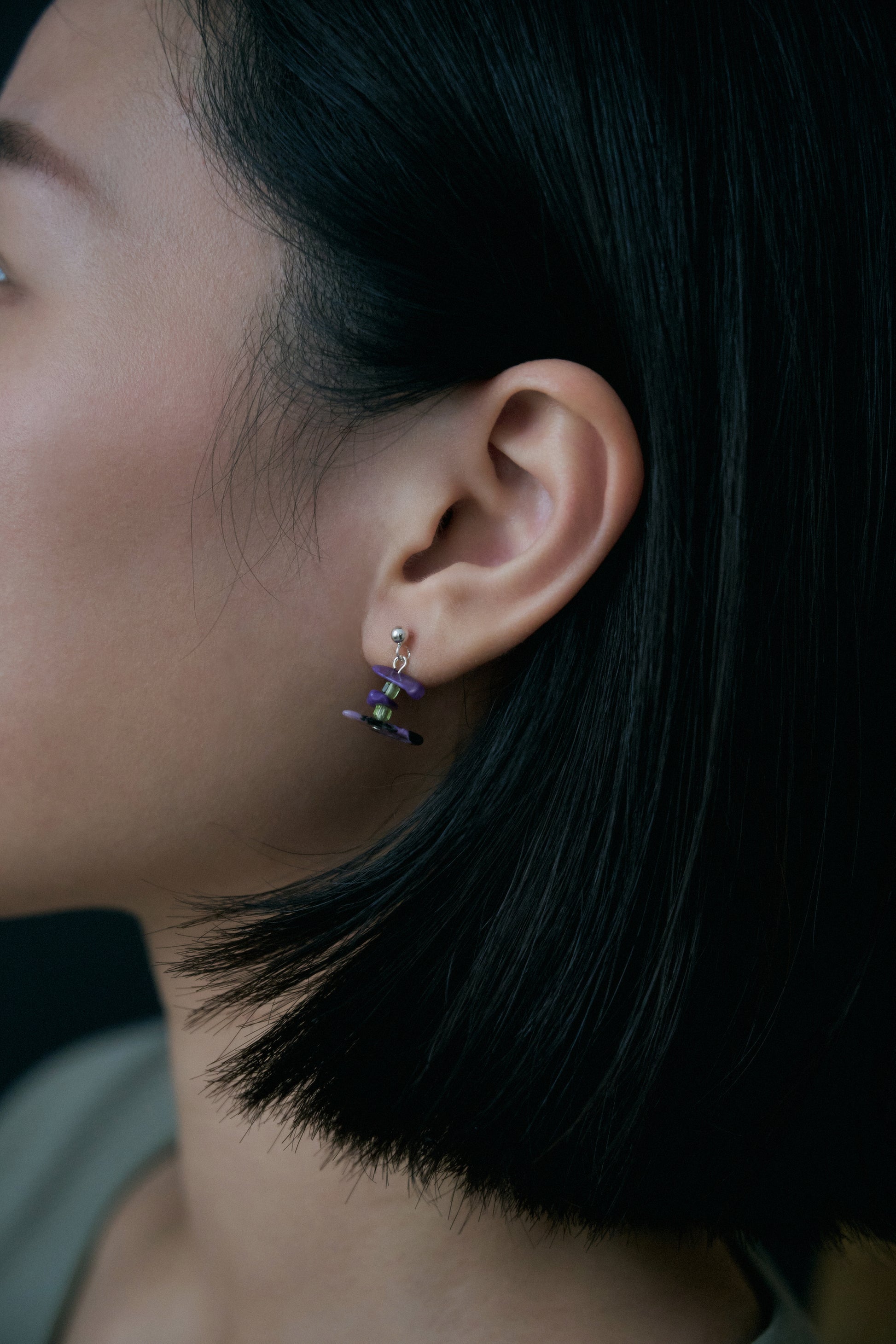 材質:隨型紫龍晶、橄欖石珠、925銀耳針