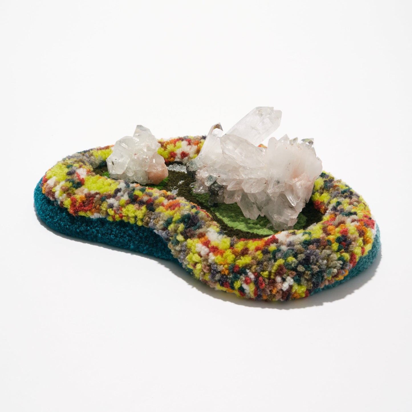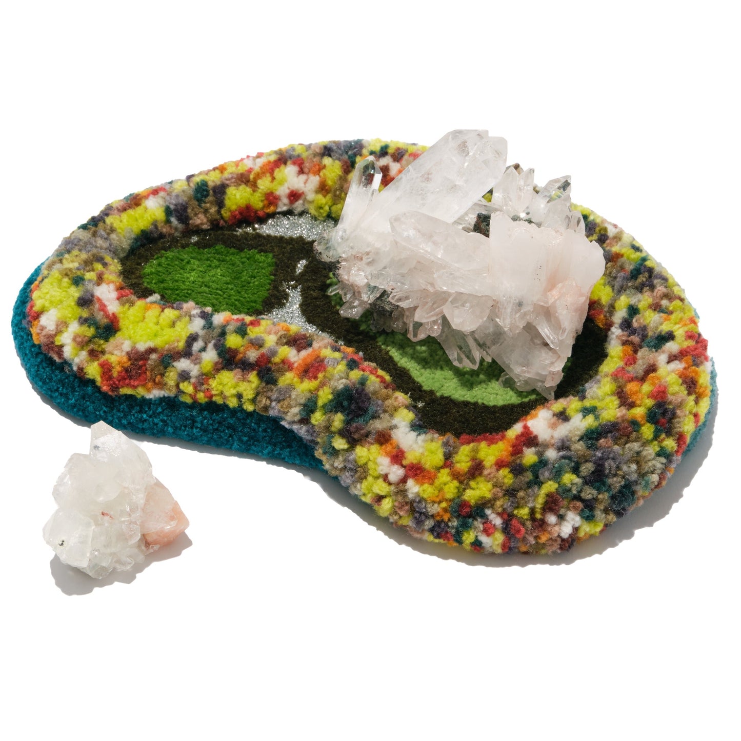 此次特別與地毯藝術品牌Mumble聯名合作,為礦石收藏者特別設計出編織毛毛地毯,設計靈感源自森林中的地衣,擺放上水晶礦石即可在家中打造療癒的角落。