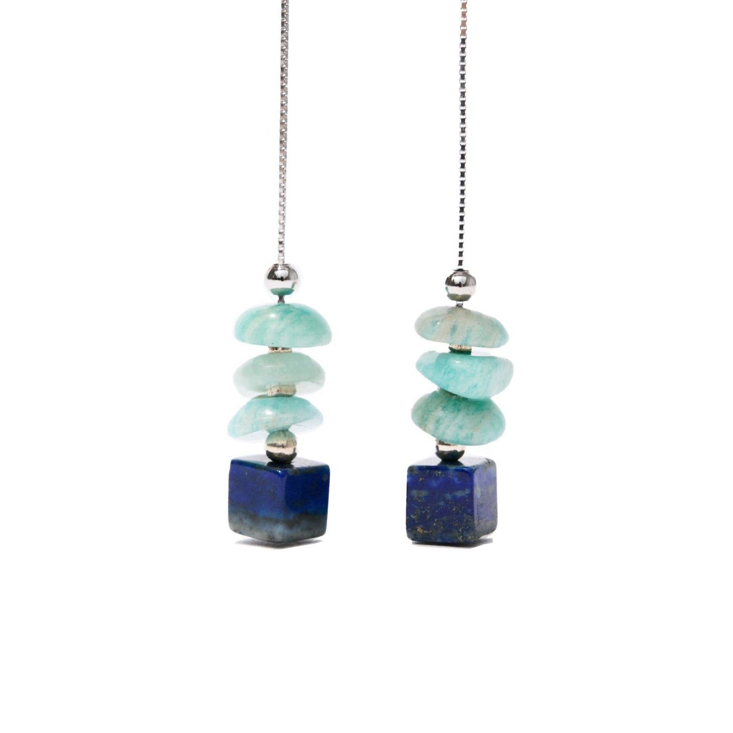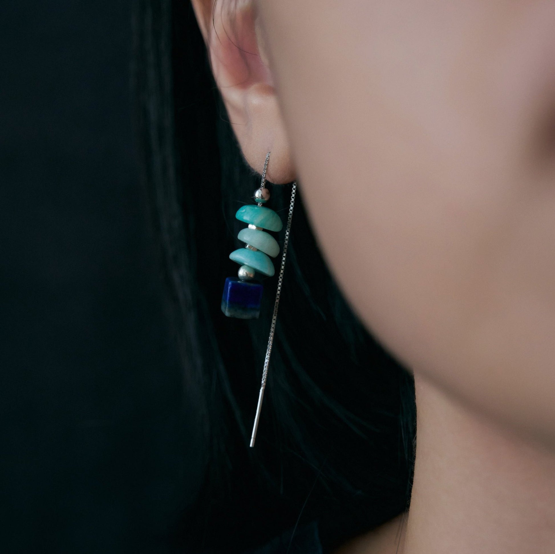 材質: 天河石、青金石、925銀珠、925銀耳針