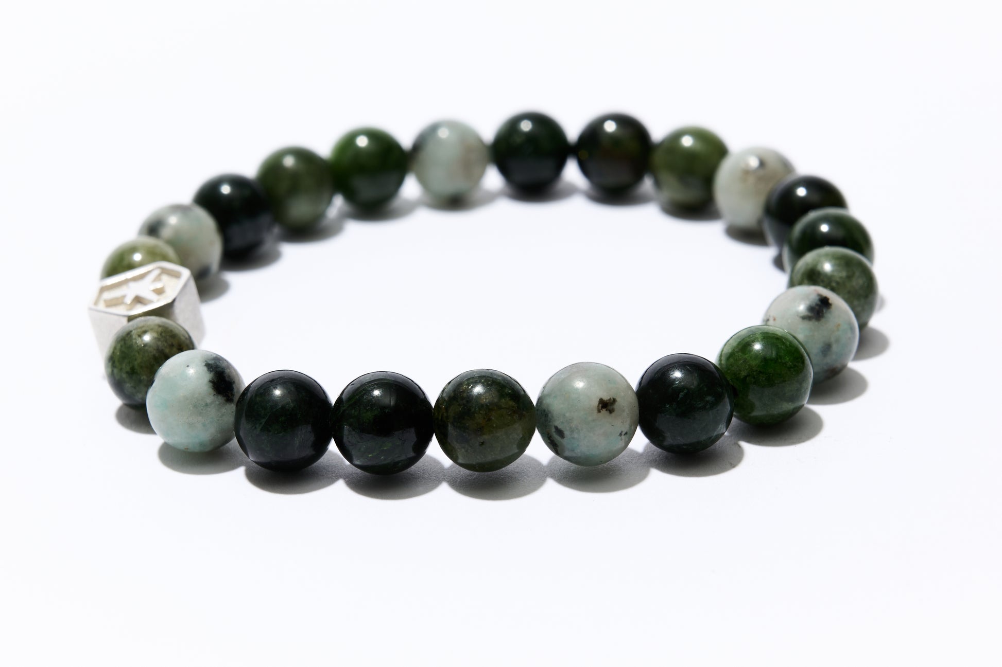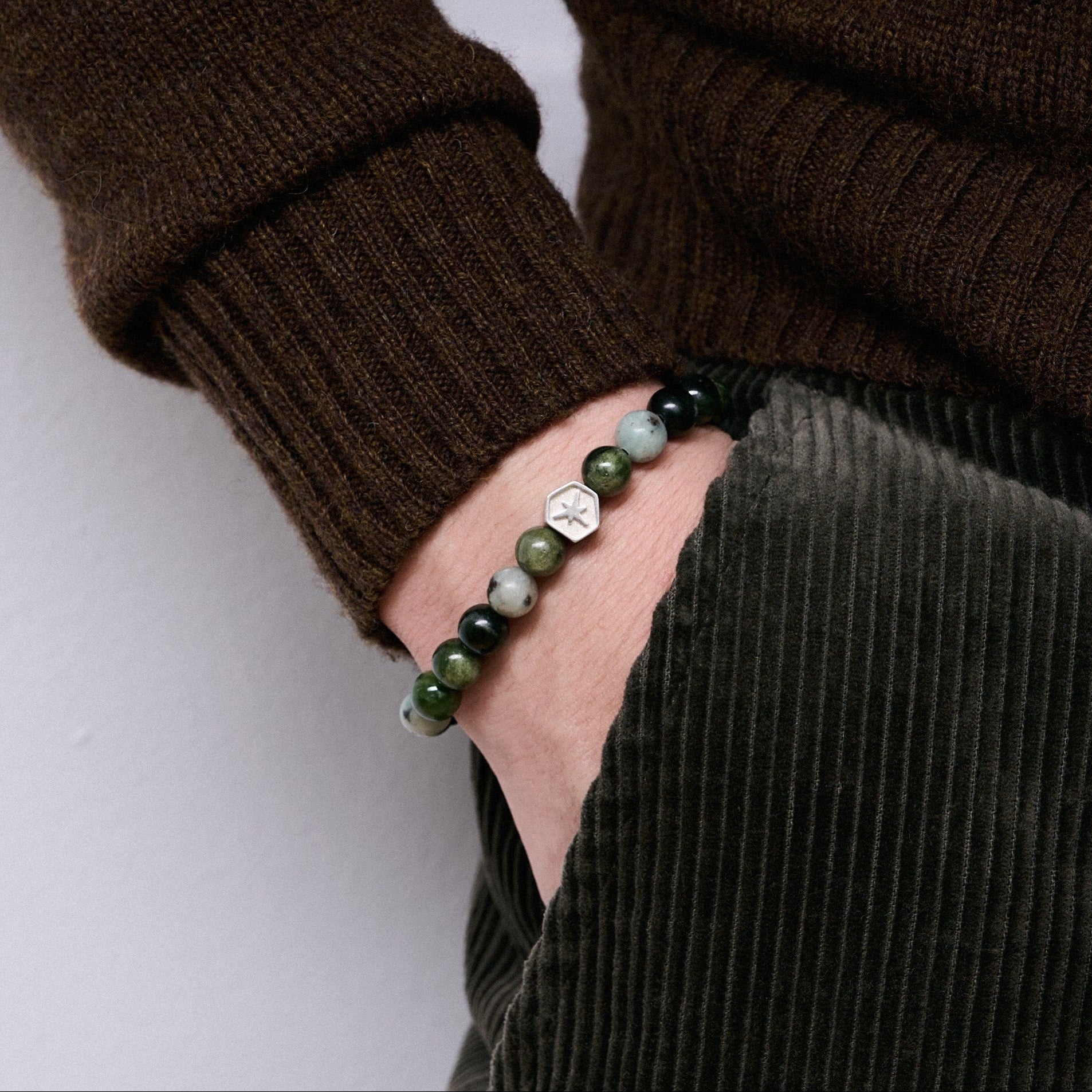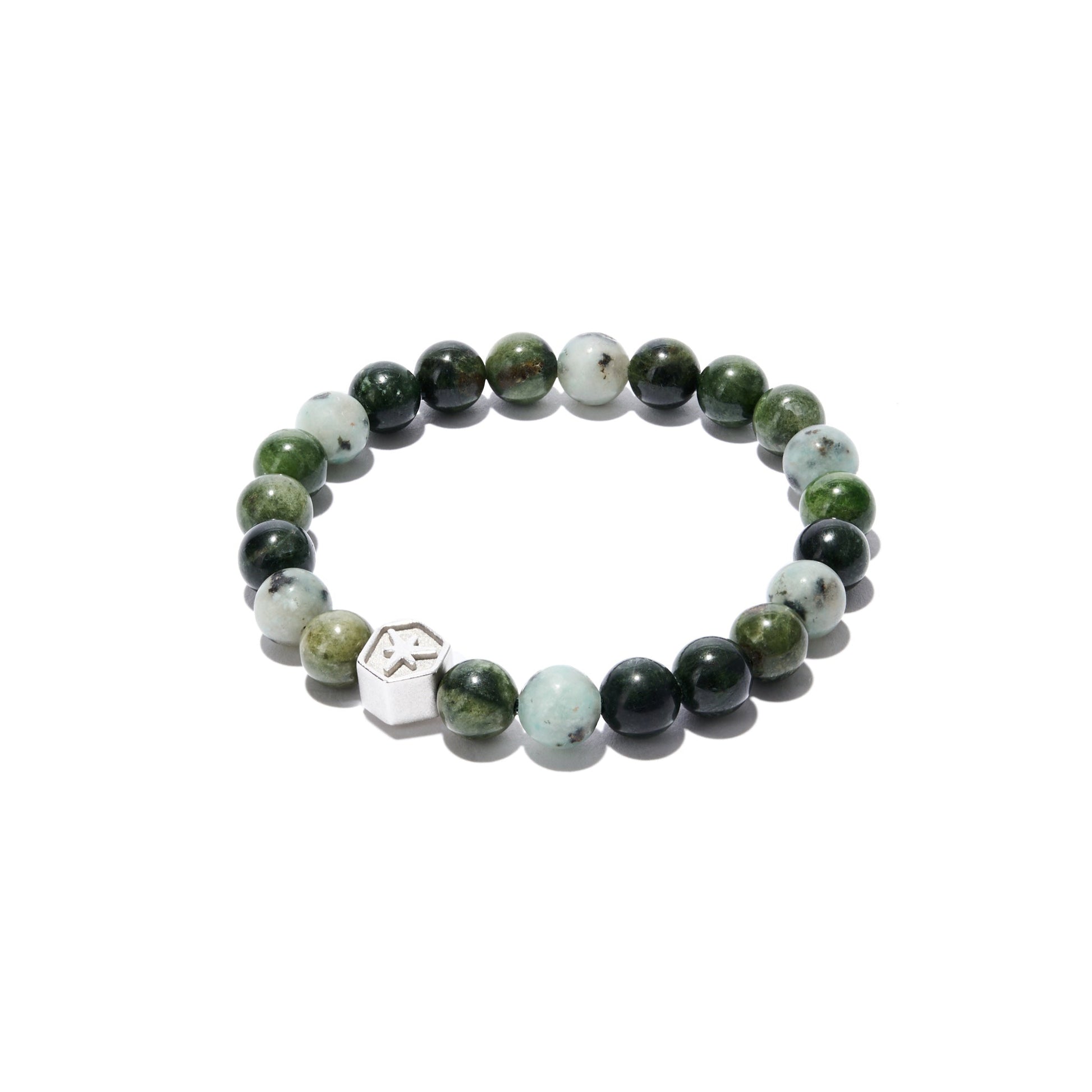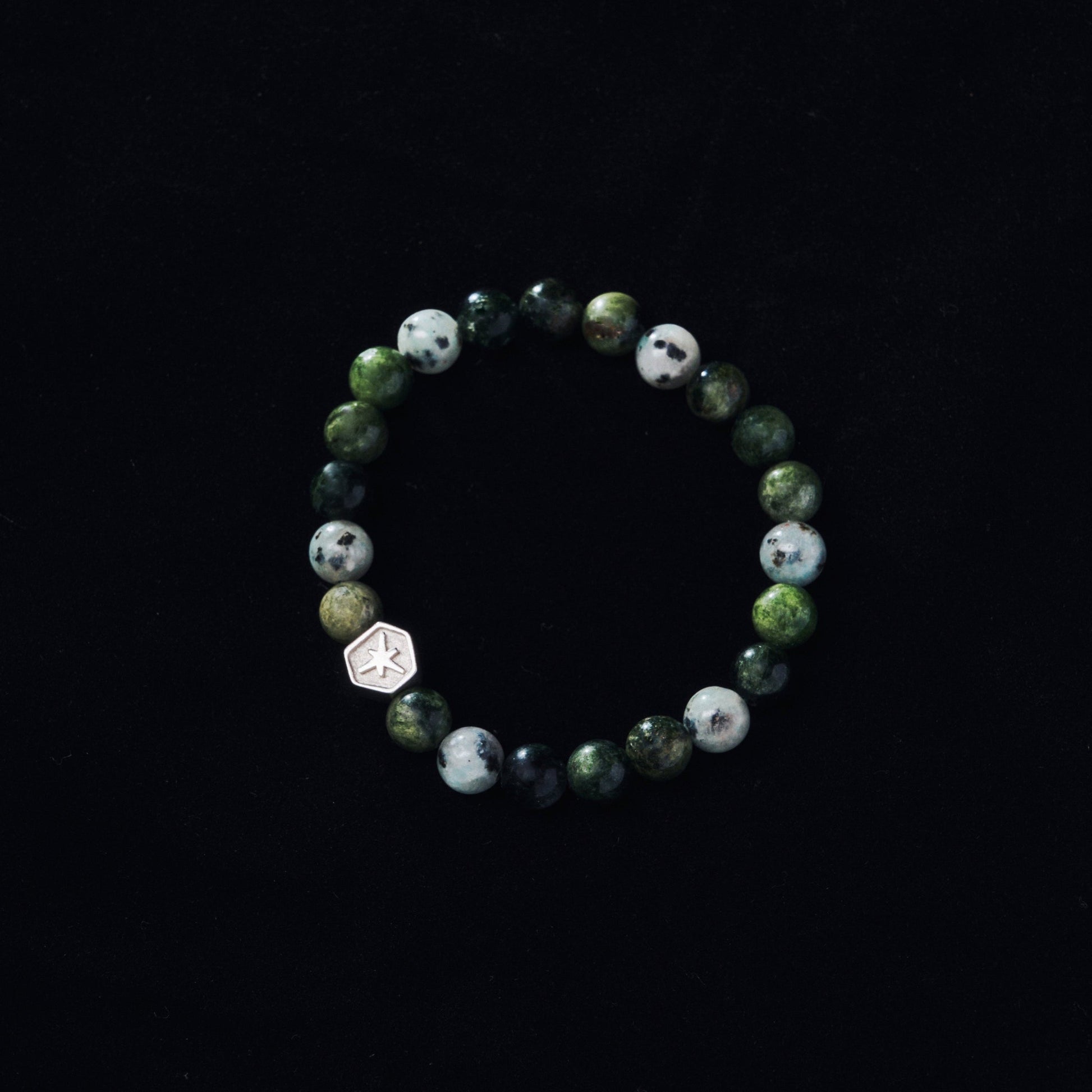 材質:綠透輝石、奇異果碧玉、Mountopia 北極星標誌 925銀飾、彈性絲線