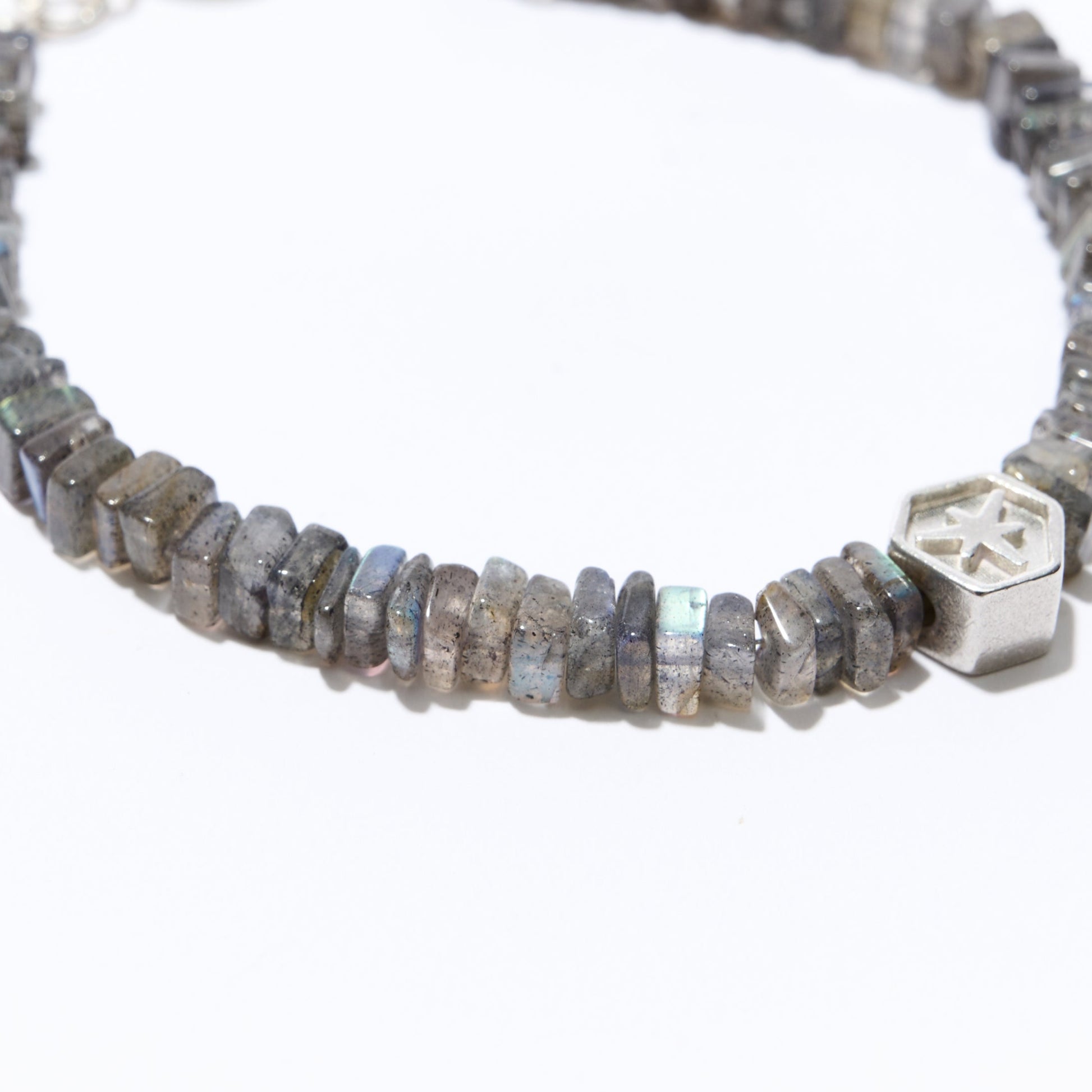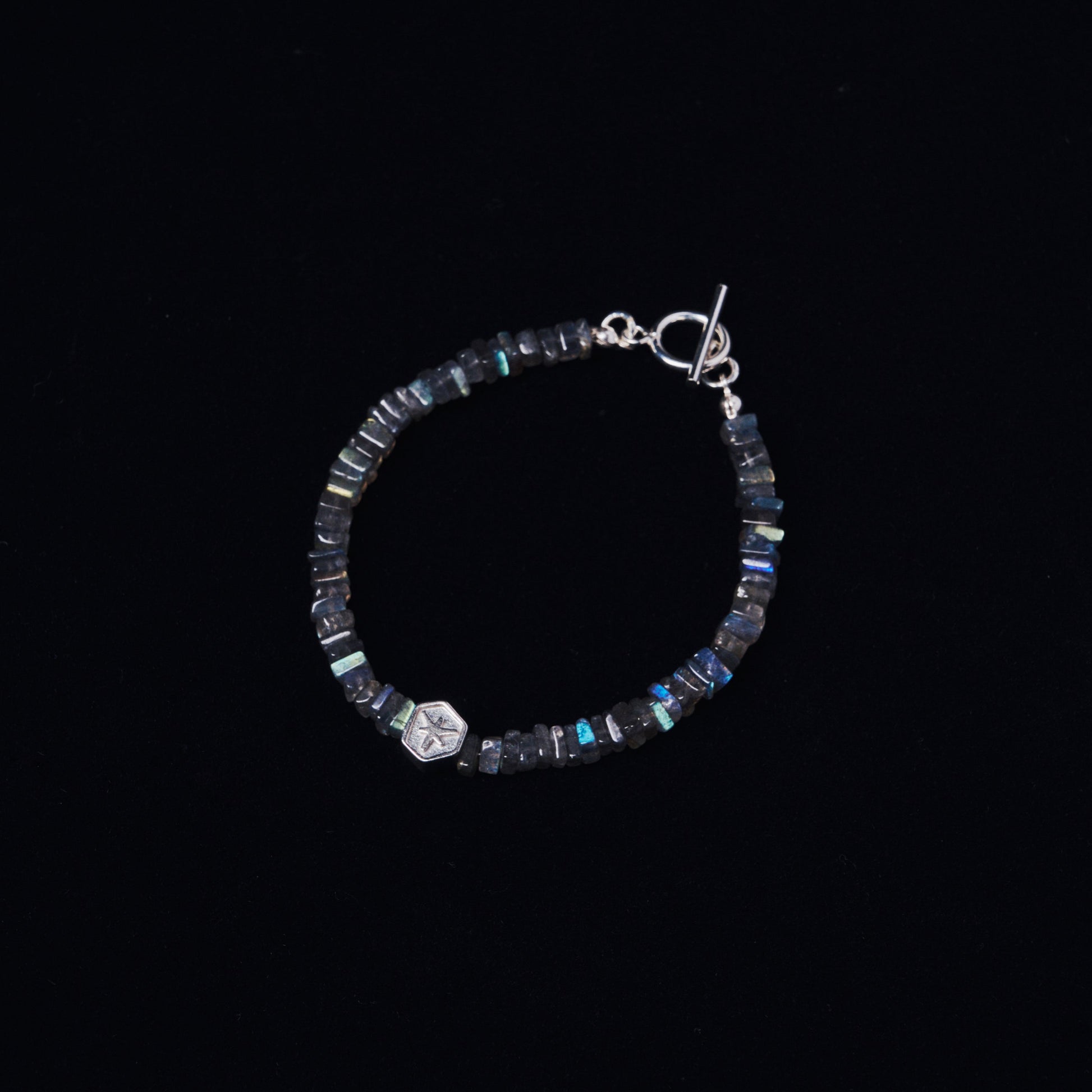 材質:拉長石、Mountopia 北極星標誌 925銀飾、鋼絲線