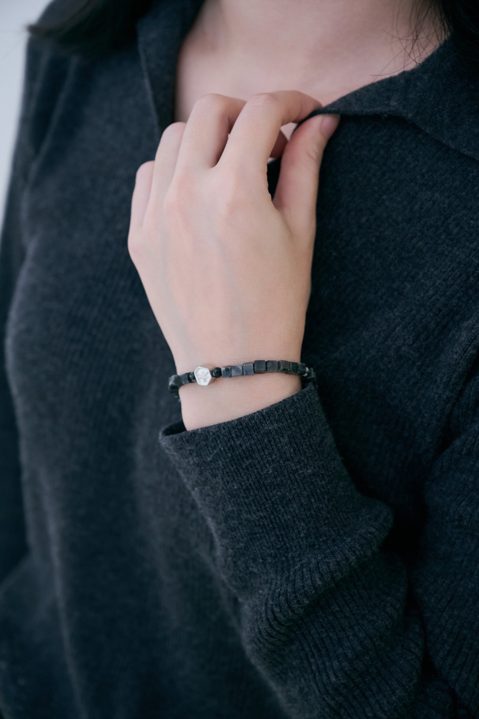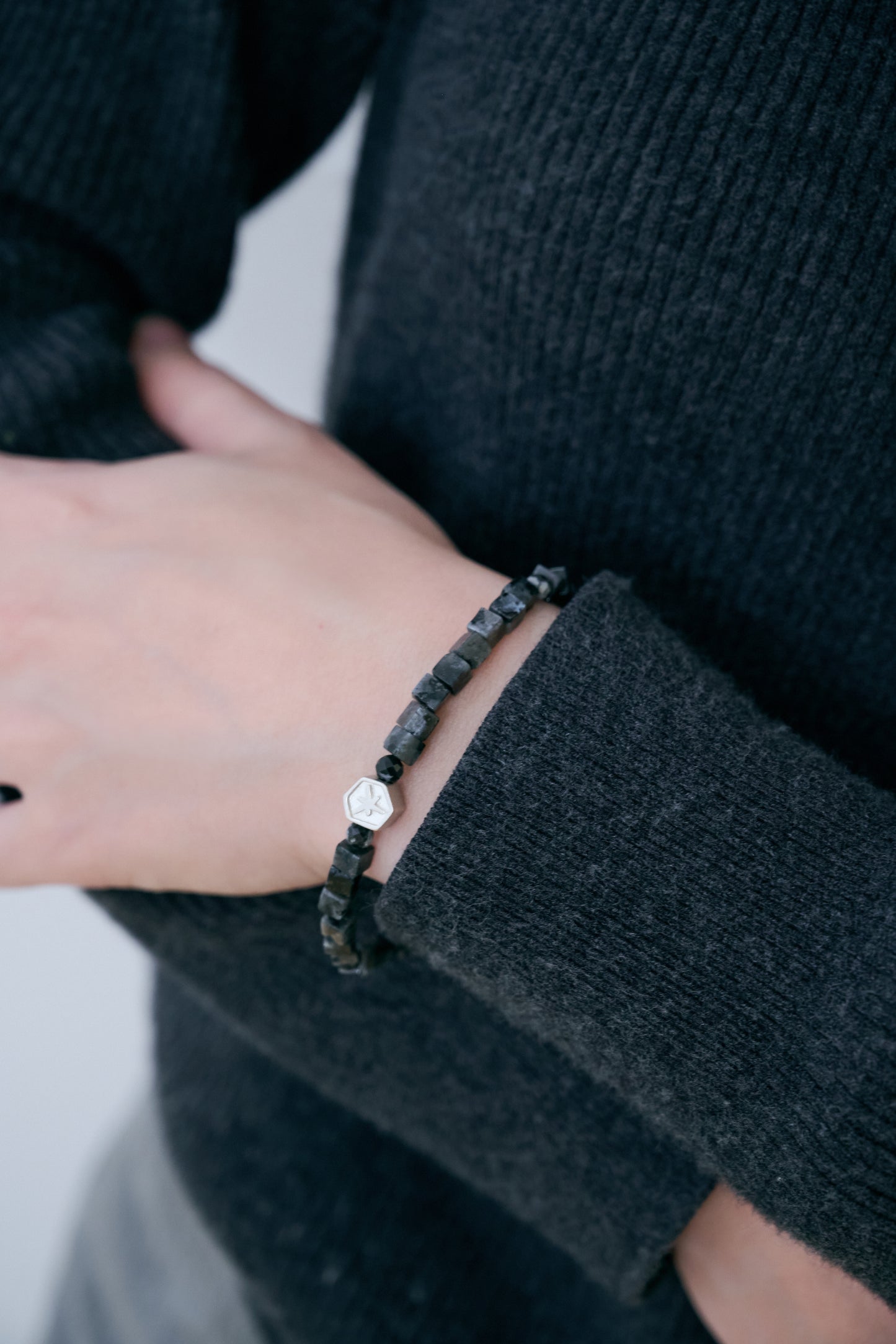 材質:黑拉長石、雪花黑曜石、Mountopia 北極星標誌 925銀飾、鋼絲線
