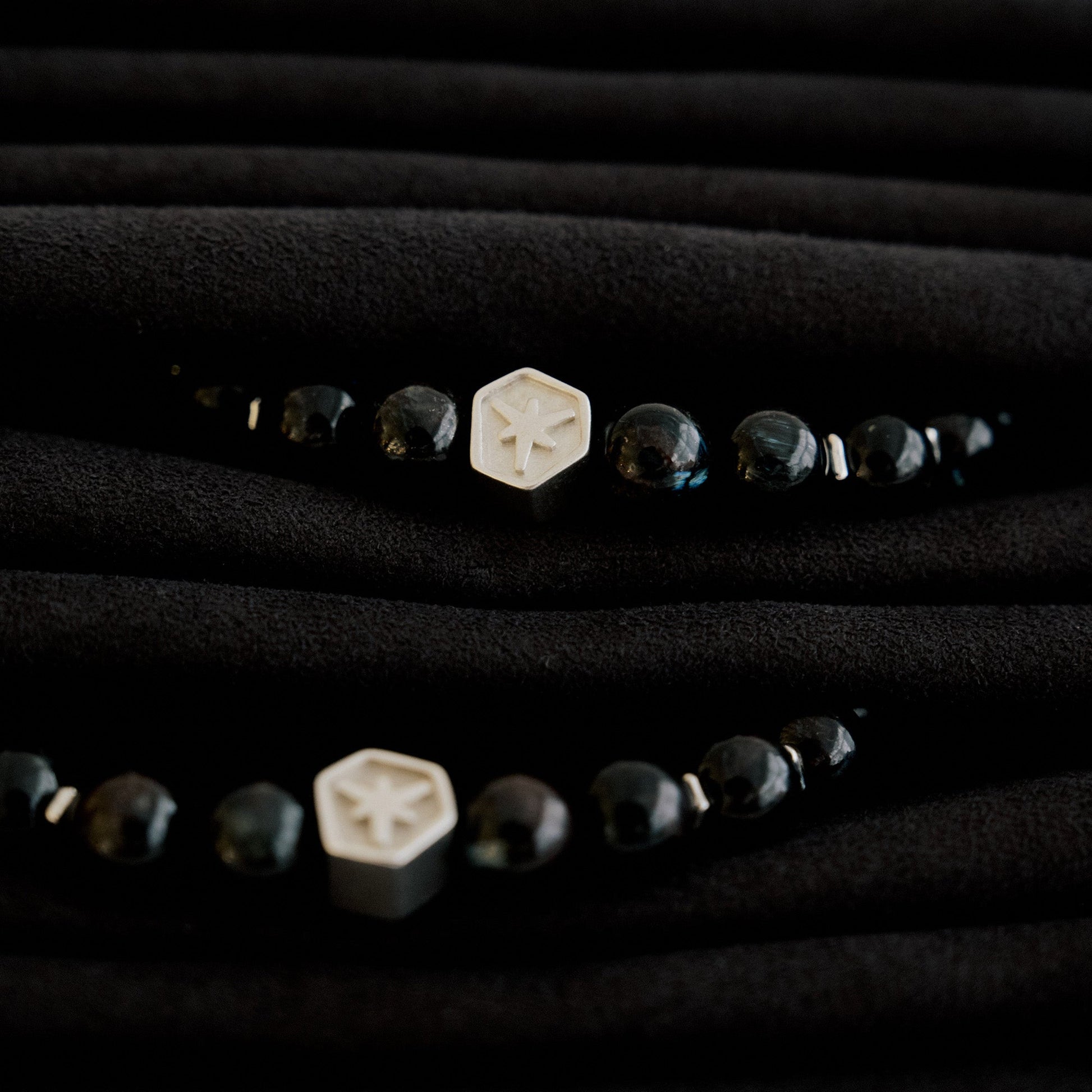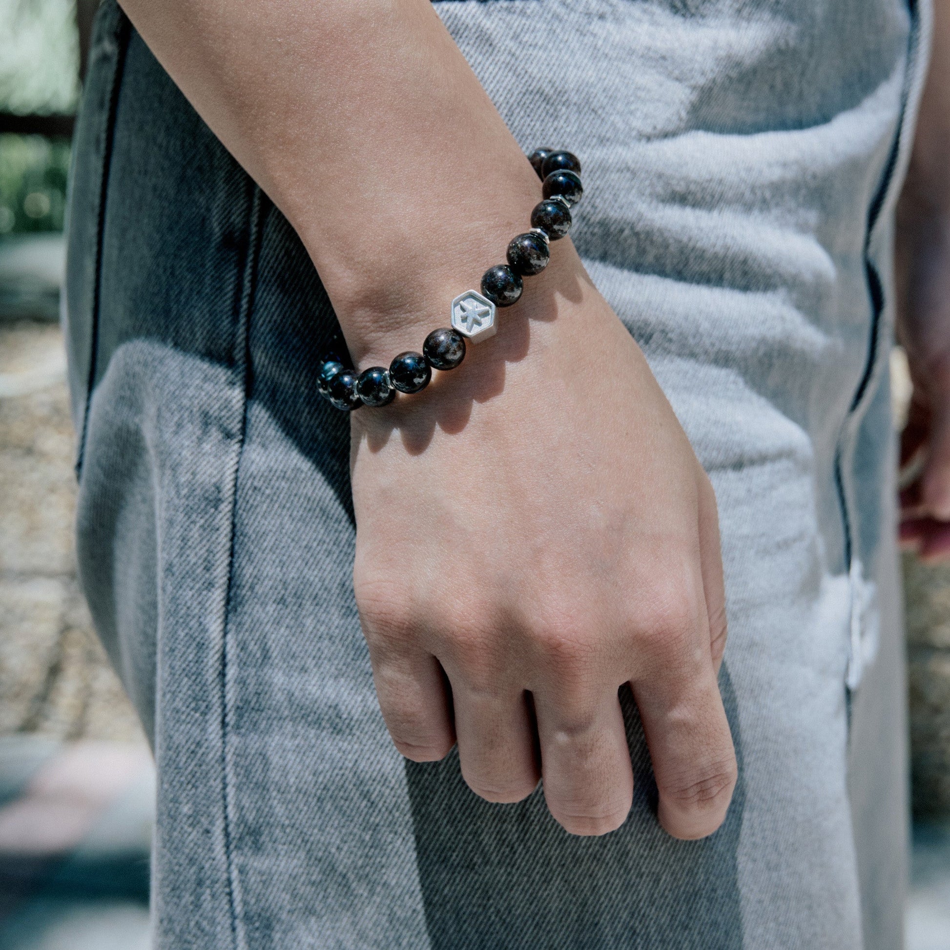 材質:星葉石、925 silver 隔珠、 Mountopia 北極星標誌 925銀飾、 彈性絲線