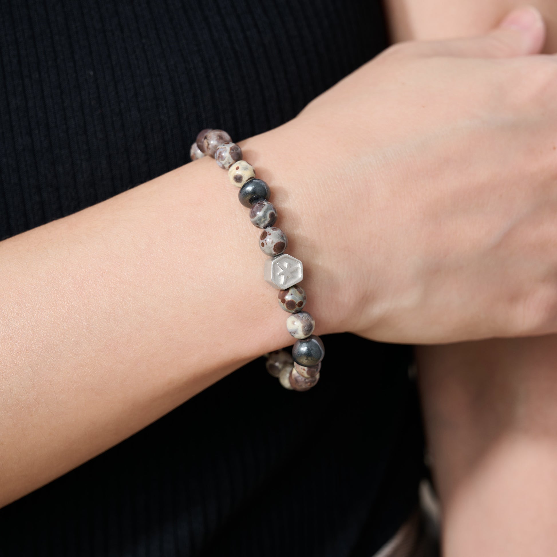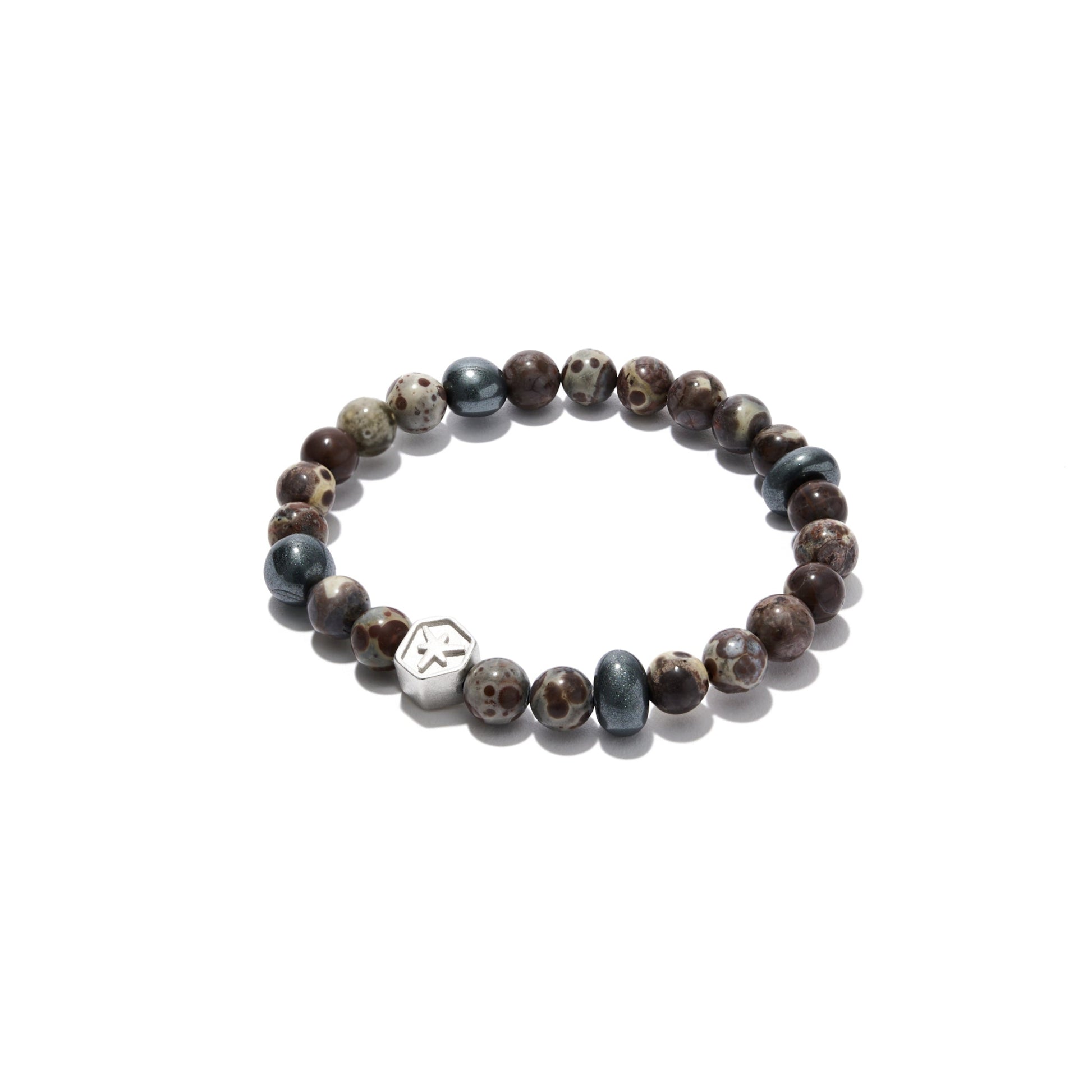 材質:星點碧玉、Mountopia 北極星標誌 925銀飾、赤鐵礦、彈性絲線