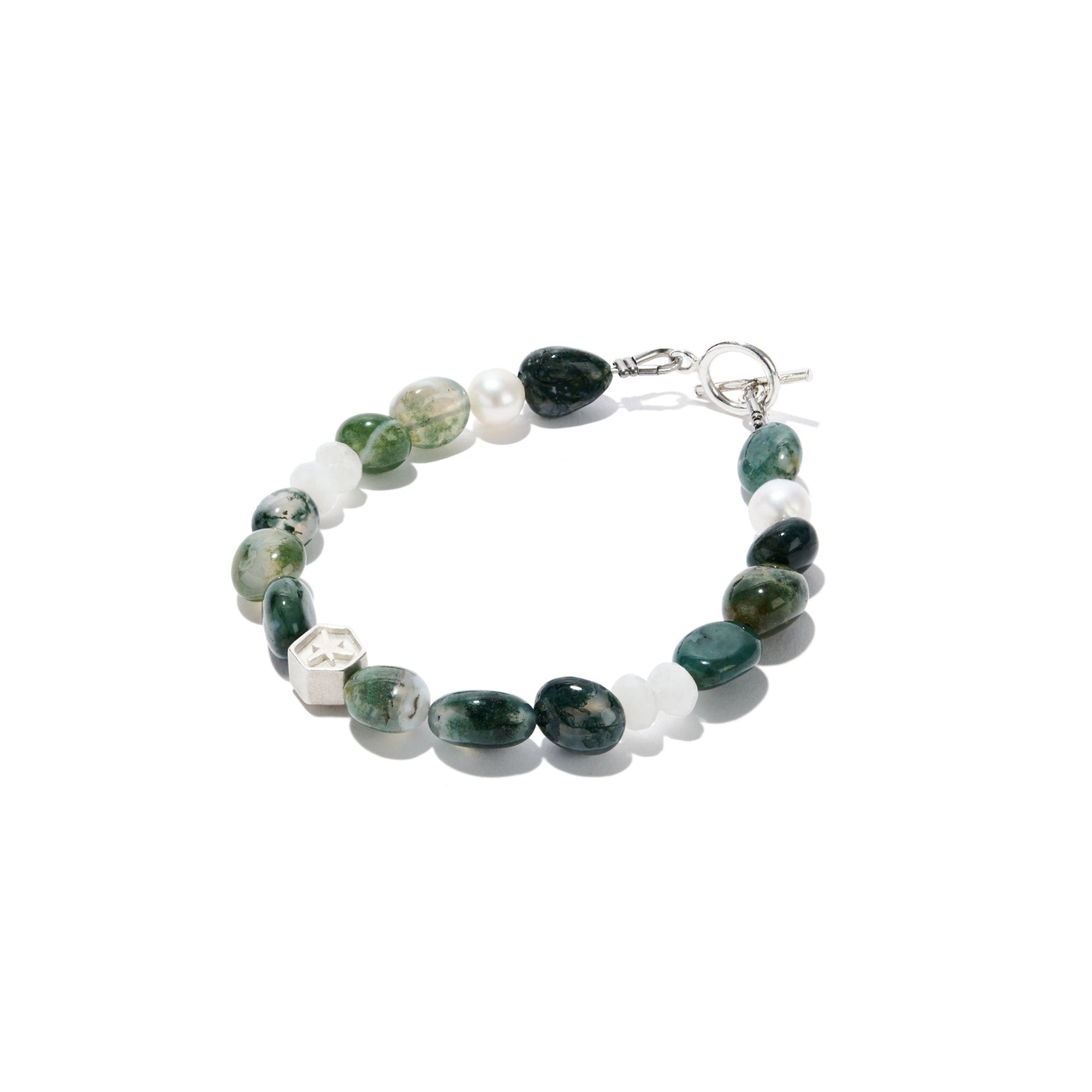 材質:水草瑪瑙、月光石、珍珠、Mountopia 北極星標誌 925銀飾、鋼絲線