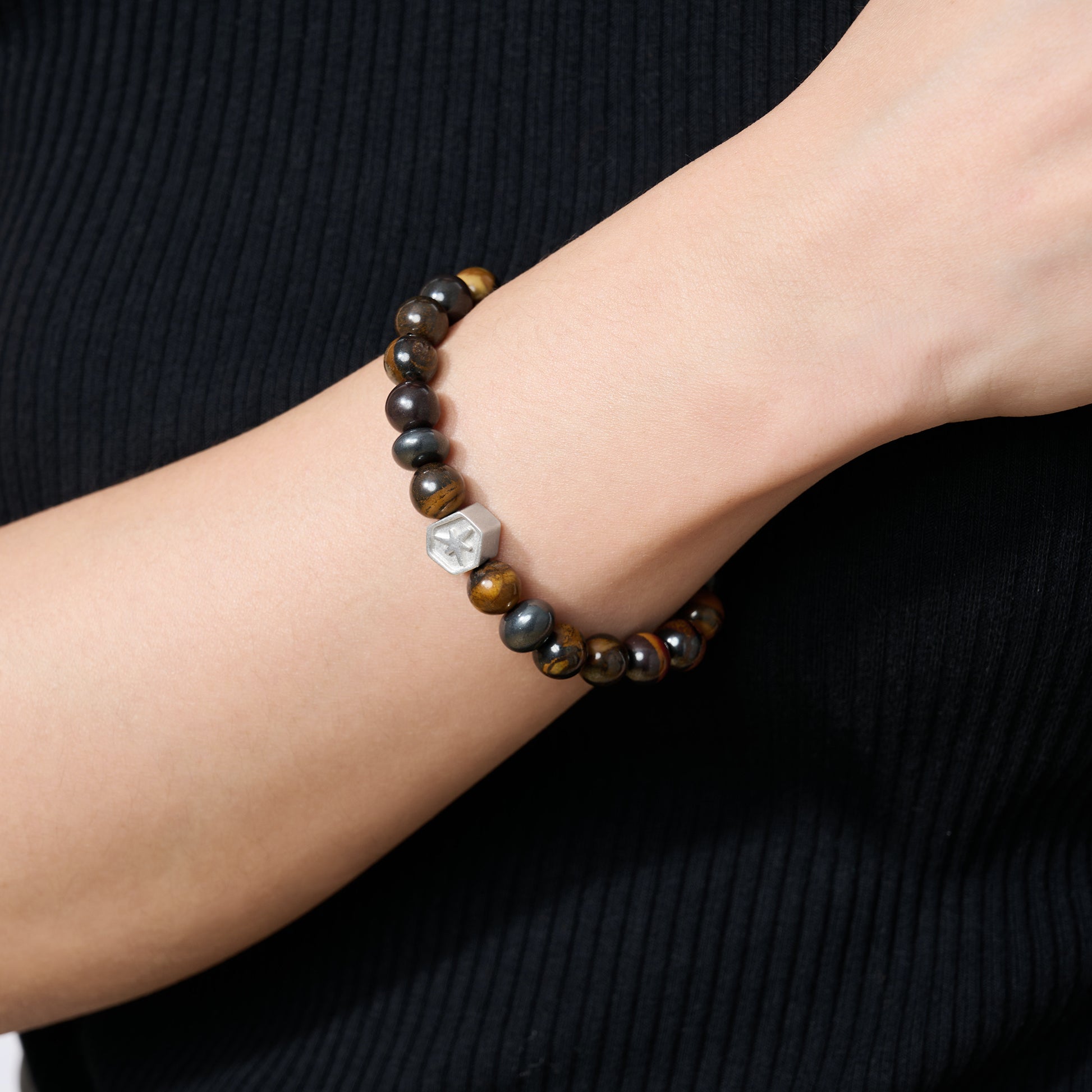 材質:虎眼石共生鐵礦、赤鐵礦、Mountopia 北極星標誌 925銀飾、彈性絲線
