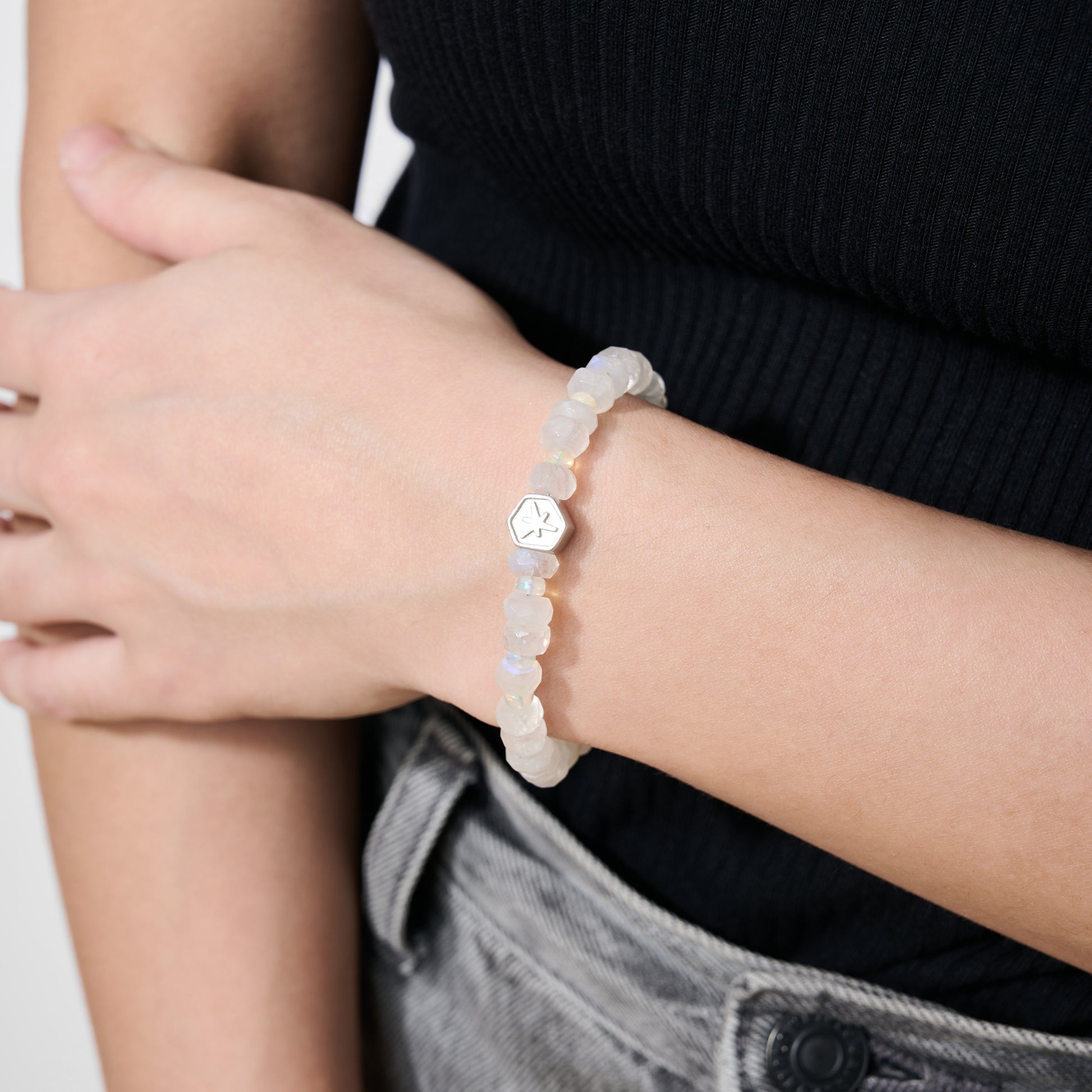 材質:月光石、蛋白石、Mountopia 北極星標誌 925銀飾、鋼絲線