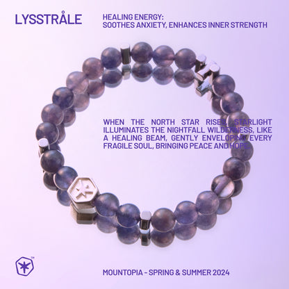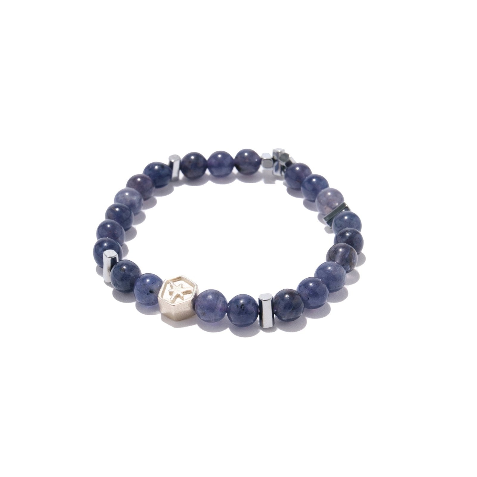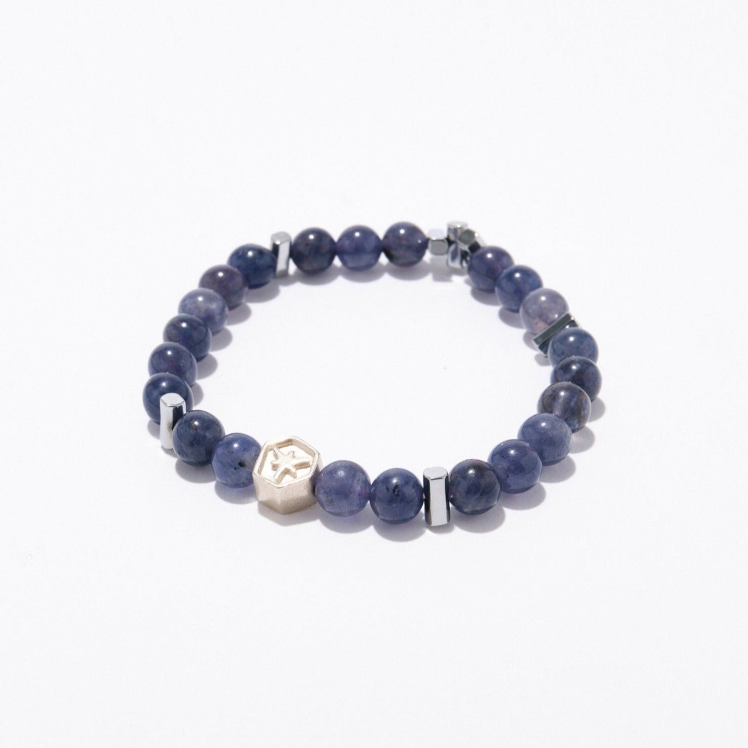 材質:菫青石、赤鐵礦 、Mountopia 北極星標誌 925銀飾、彈性絲線